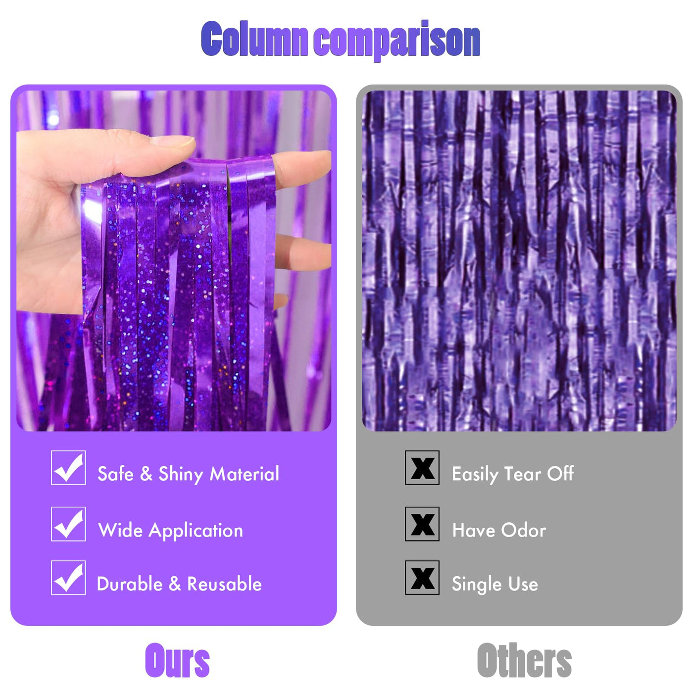 Canrevel 2 Pack 3.3X8.2 Feet Laser Purple Foil Fringe Backdrop Curtains, Glitter Tinsel Streamers For Mermaid Birthday Party Dec