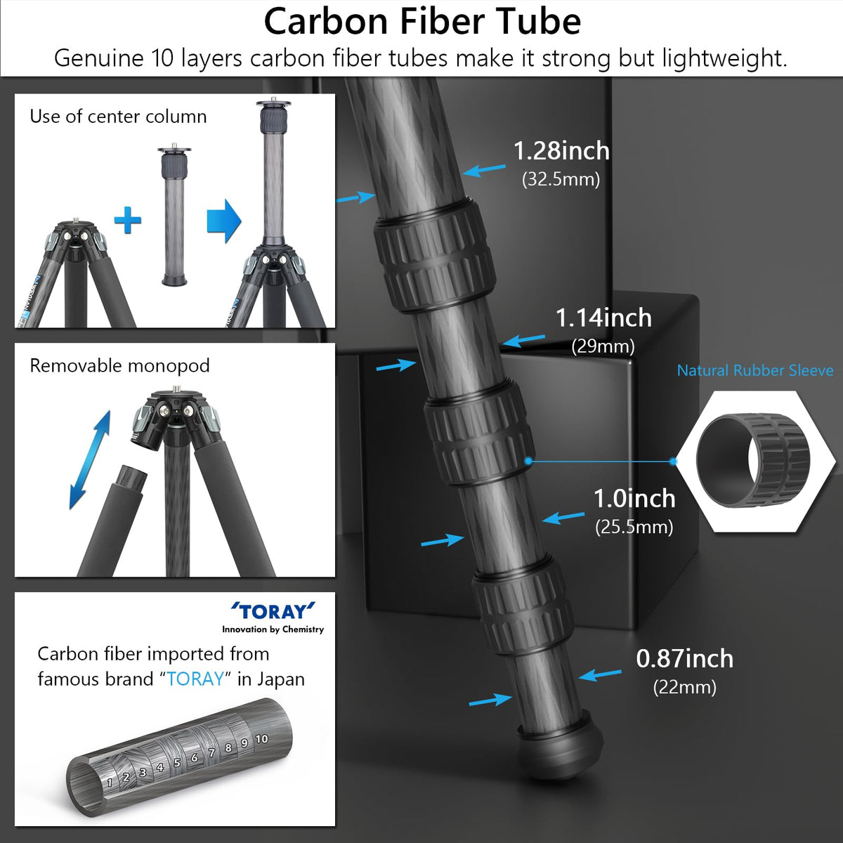 Carbon Fiber Heavy Duty Tripod Artcise 81'' Professional Tripod For Camera, 10 Layer Carbon Fibre Tube, 32.5Mm Leg With Low Profile Tripod Ball Head For Canon Nikon Sony, Dslr Slr Digital Camcorder