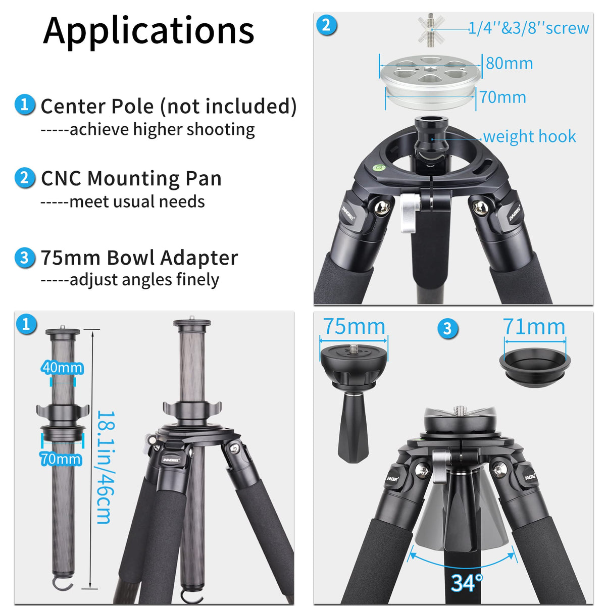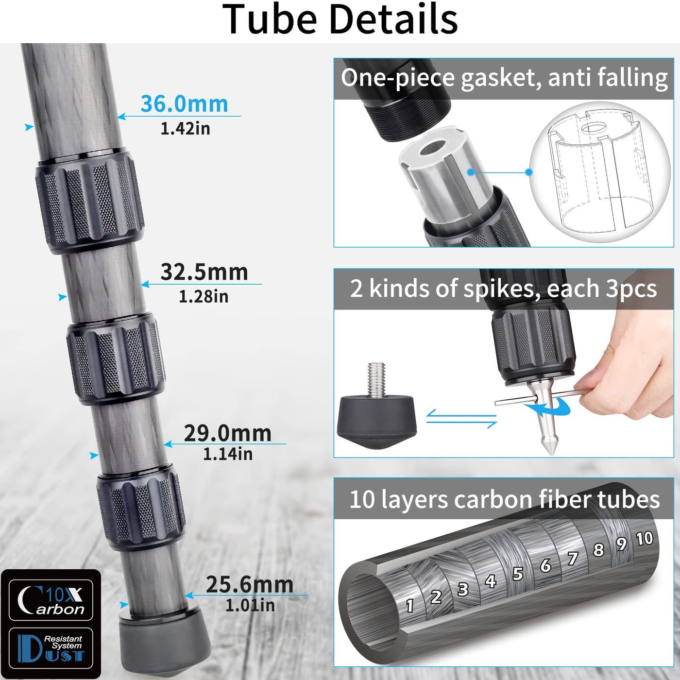 Carbon Fiber Tripod Lt364C Small Size Rt90C Professional Heavy Duty Tripods Stable Compact Stand With 75Mm Bowl Adapter For Video Camera Bird Photography Dslr 36Mm Tube 77.2Lb/35Kg Load, No Mid Column