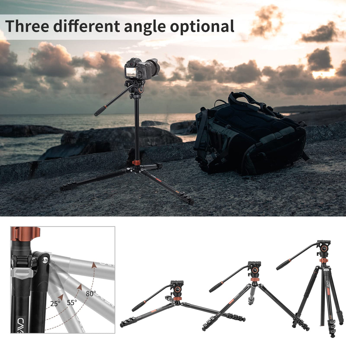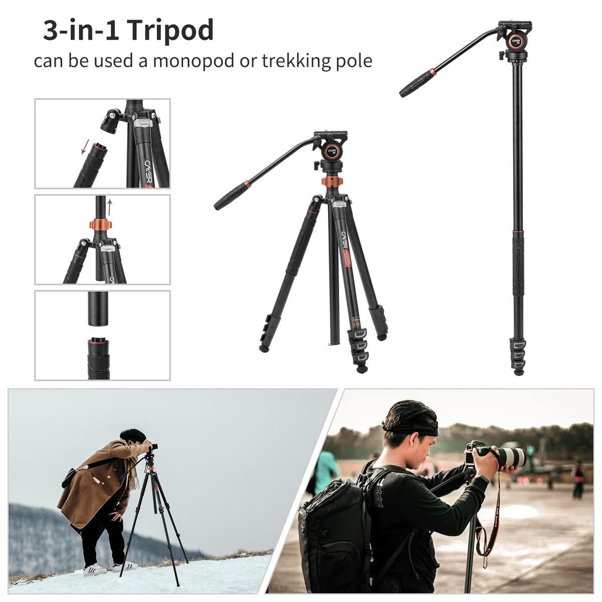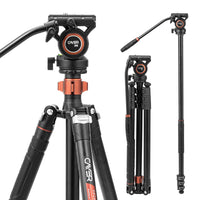 Cayer Fp2450 Fluid Head Tripod, 75 Inches Aluminium Video Tripod, 4 Section Compact Camera Tripod Monopod With Fluid Head For Ds