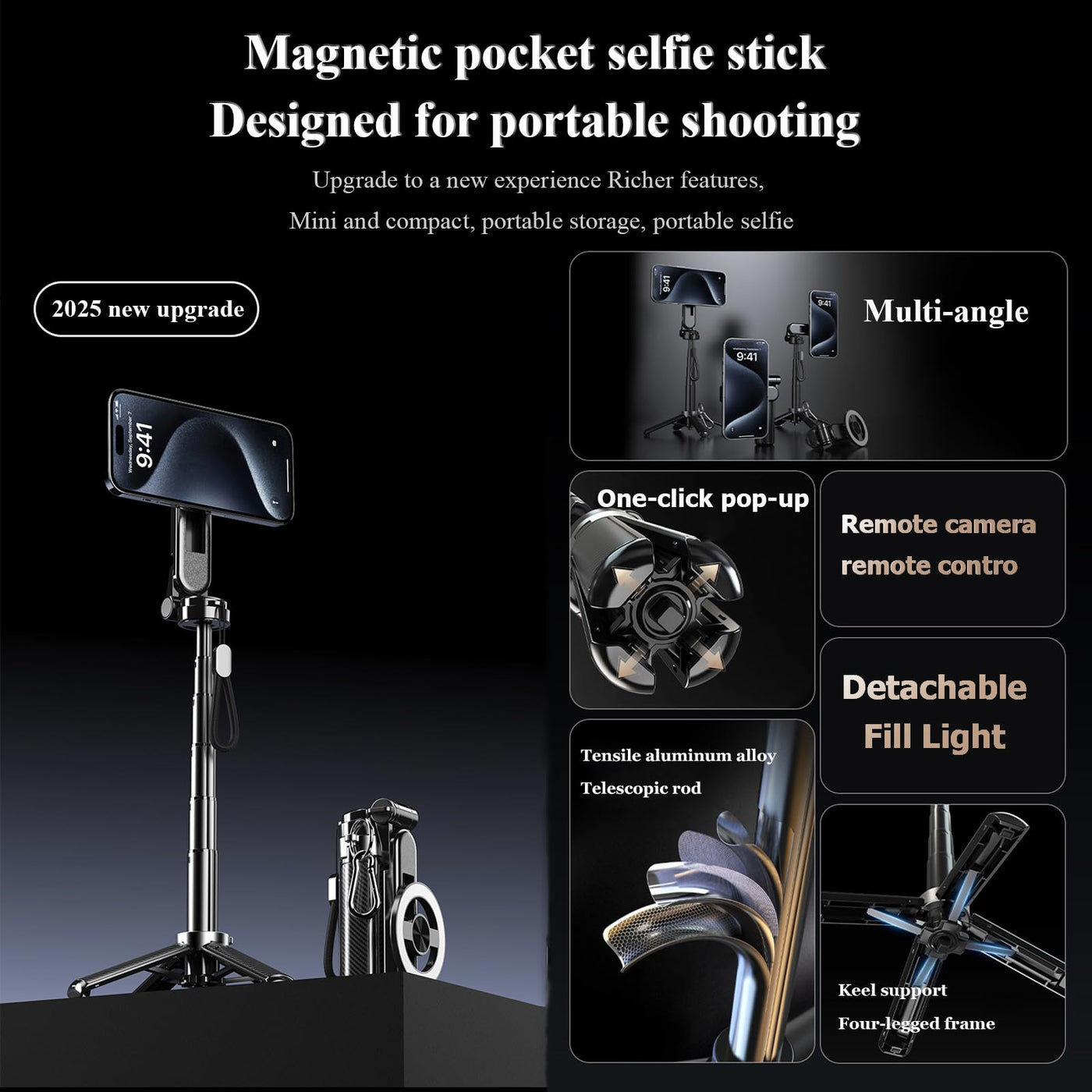 Cbdywvr Magsafes Tripod Stand For Iphone,4 In 1 Multifunctional Magnetic Selfie Stick,360 Rotation Phone Tripod With Wireless Remote For Iphone & Android,For Cell Phone Video Recording Travel