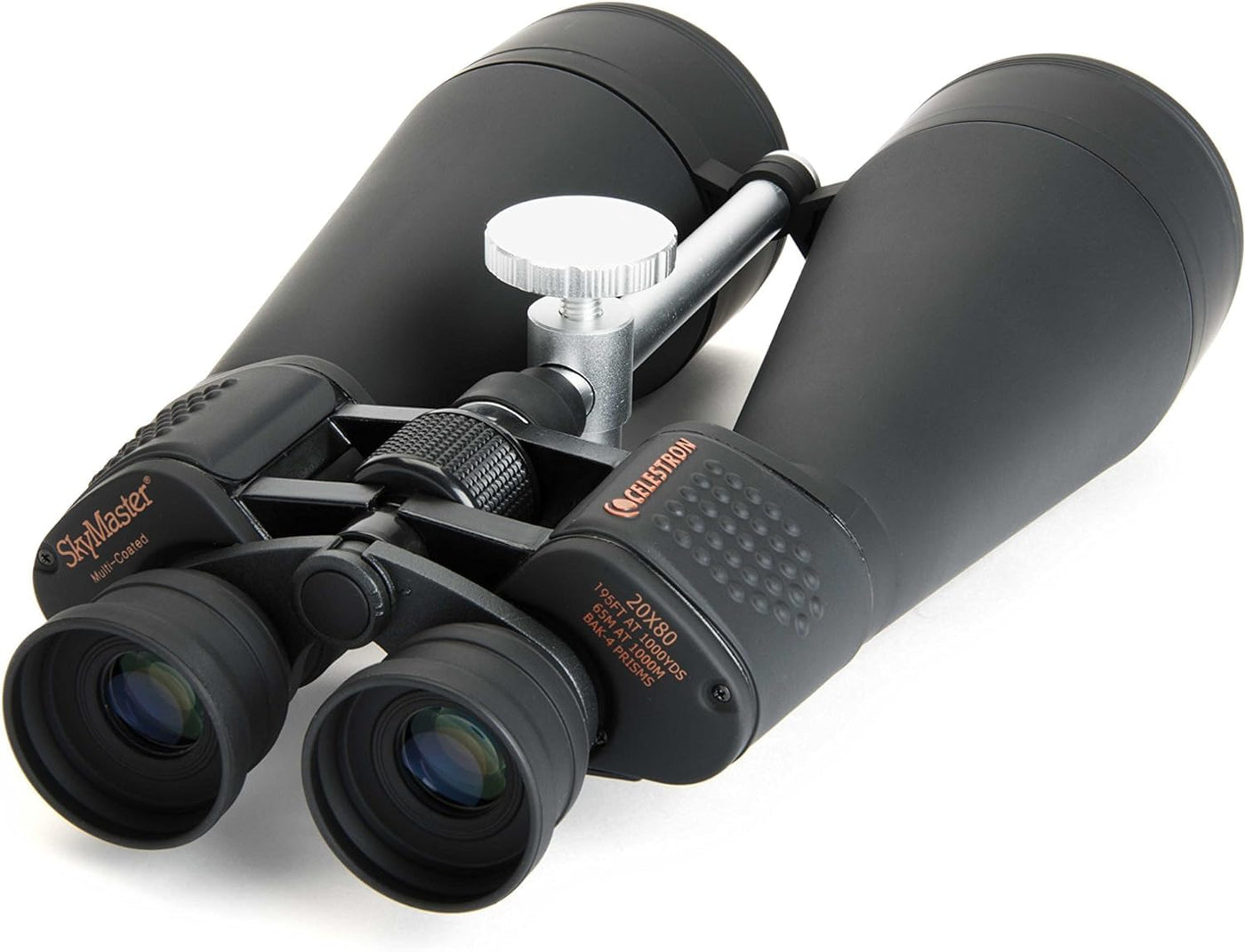 Q: Can I use the SkyMaster binoculars with a tripod?A: Yes, the Celestron SkyMaster 20x80 binoculars come with a built-in tripod adapter. This allows you to mount them on any traditional photographic tripod, providing added stability and comfort for extended viewing sessions, which is particularly useful for astronomy or wildlife observation.