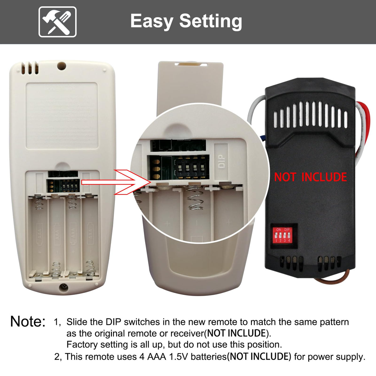 This Remote Controller Is Designed To Separately Control Your Ceiling Fan Speed And Light Brightness. The Light Button Only Control The Light On/Off. No Reverse Function. Need To Know Before Buying: This Fan-9T With Fan Timer Key Remote Does Not Have The For/Rev Button, If Your Original Remote Is The Fan-9T Remote With Green Button And The For/Rev Key, Please Purchase The Remote With The Same Buttons In The Store. Note: This Fan-9T Ceiling Fan Remote Controller Is A Replacement For Hampton Bay. Make Sure Your Original Remote With Model/Fcc Id: Fan-9T/L3Hfan-9T On The Back,And The Front Has The Orange Button And Fan Timer Key.If Not, Probably Incompatible. If The Original Receiver Is Broken, We Recommend Purchasing A Complete Fan-9T Remote Control Kit. If Your Original Remote Is The Fan-9T Remote With Green Button And The For/Rev Key, Please Purchase The Remote With The Same Buttons In The Store. Easy Install: Look The Dip Codes Inside The Old Remote With The Battery Cover Off, The Dip Switches Hidden Behind The Slot For The Battery As Picture Shows. Slide The Switches In The New Remote To Match The Same Pattern As The Original Remote. Replace The Battery In The New Remote And Things Should Work. Package Included: 1 * Transmitter 1 * Wall Mount Holder 2 * Screws 1 * Manual