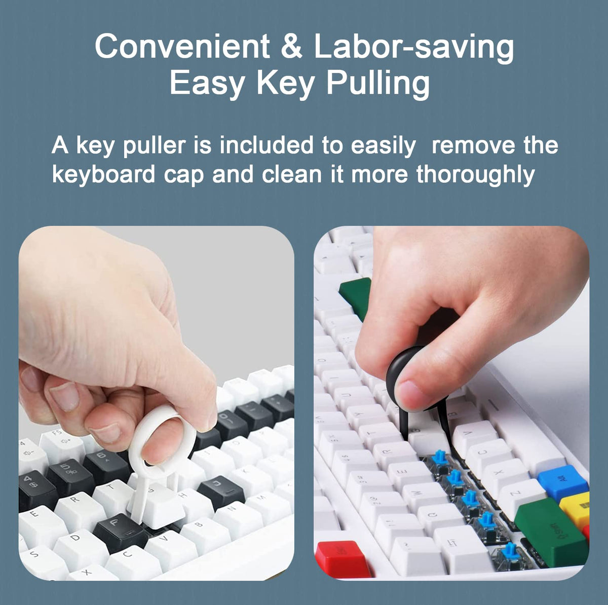 Instructions For Use:Push The Switch Upward To Expose The Pen Nib ,The Metal Pen Nib Is Used To Clean The Stubborn Dirt In The Crevice Of The Machine,And The Small Brush Is Used To Clean The Particle Dirt Of The Machine. Push The Switch Down To Reveal The Flocking Sponge Which Is Used To Clean Dust And Stains. Take Out The Key Puller,Which Is Used To Remove Key Puller The Key Caps Of The Mechanical Keyboard And Deeply Clean The Internal Stains Of The Keyboard. Nylon Brush Can Be Used To Clean Surface Dust And Debris From Keyboards,Desktops.