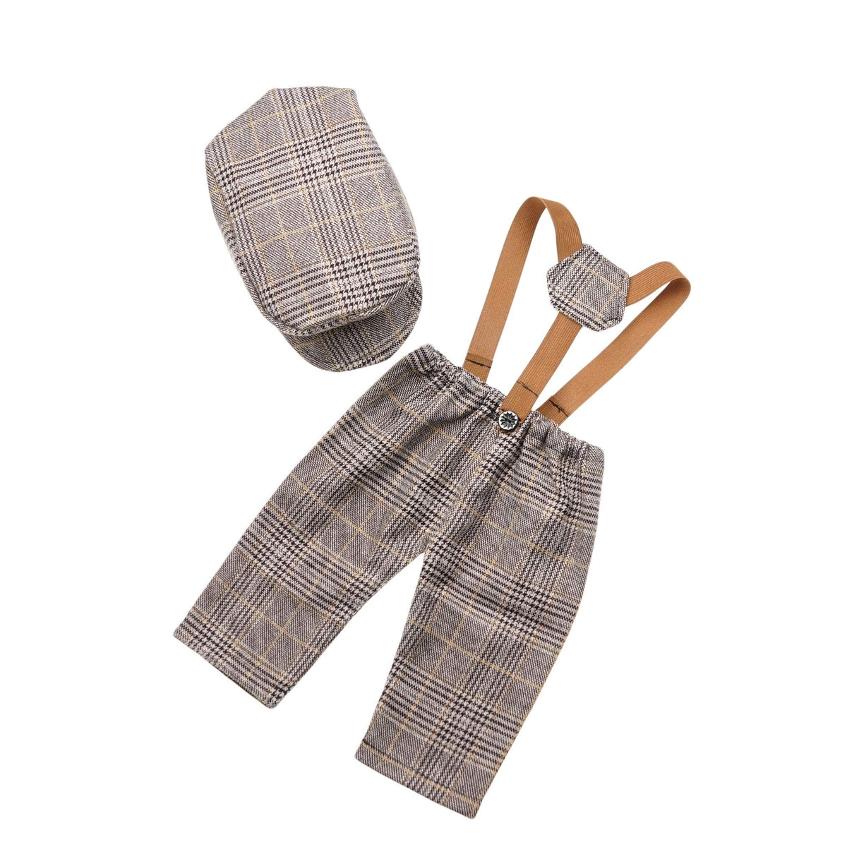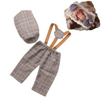 Coberllus Newborn Monthly Baby Photo Props Stripe Cool Boys Cap Rompers Photography (Brown)