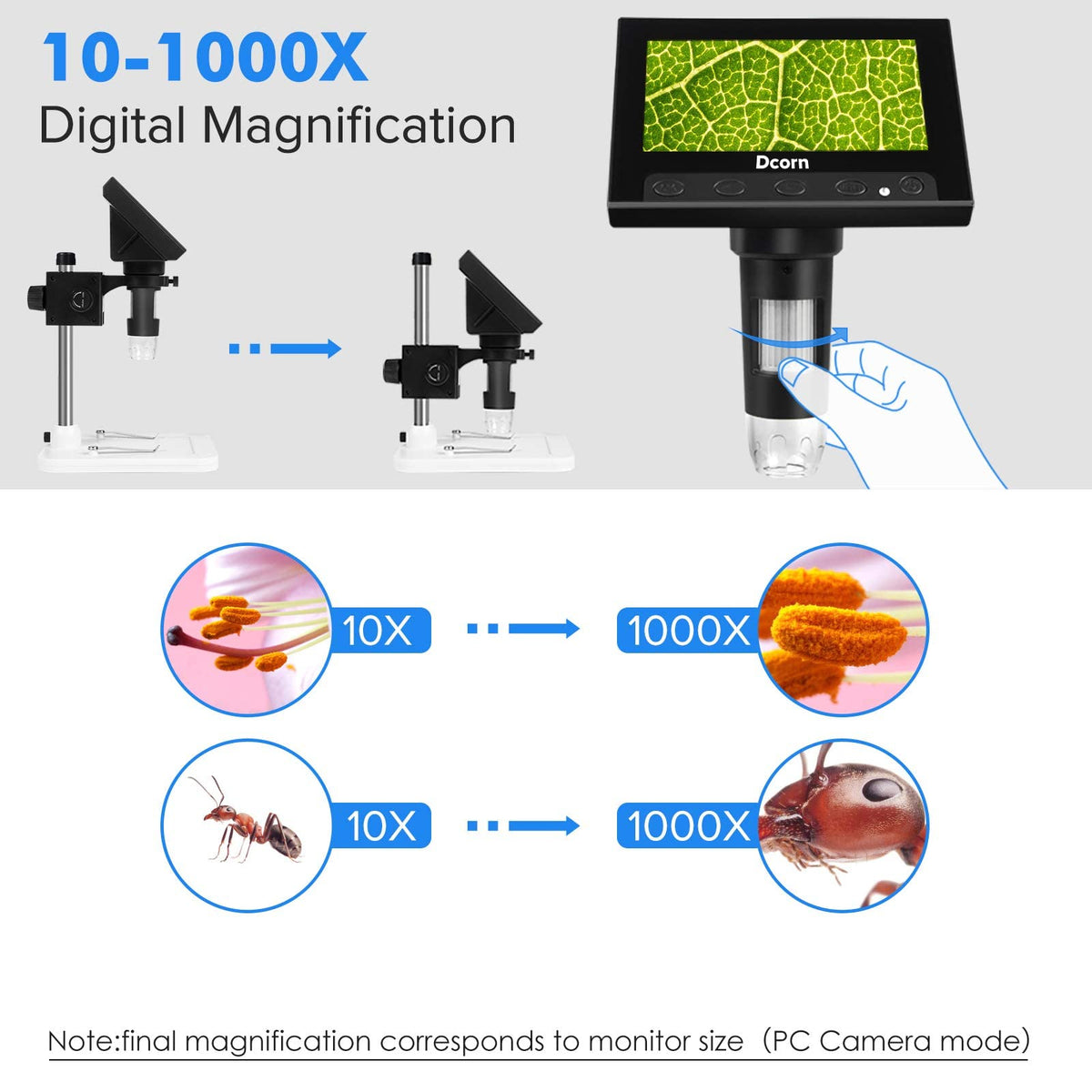 Coin Microscope, Dcorn 4.3 Inch Lcd Digital Microscope With 32Gb Tf Card 10X 1000X Magnification Video Camera Handheld Microscop