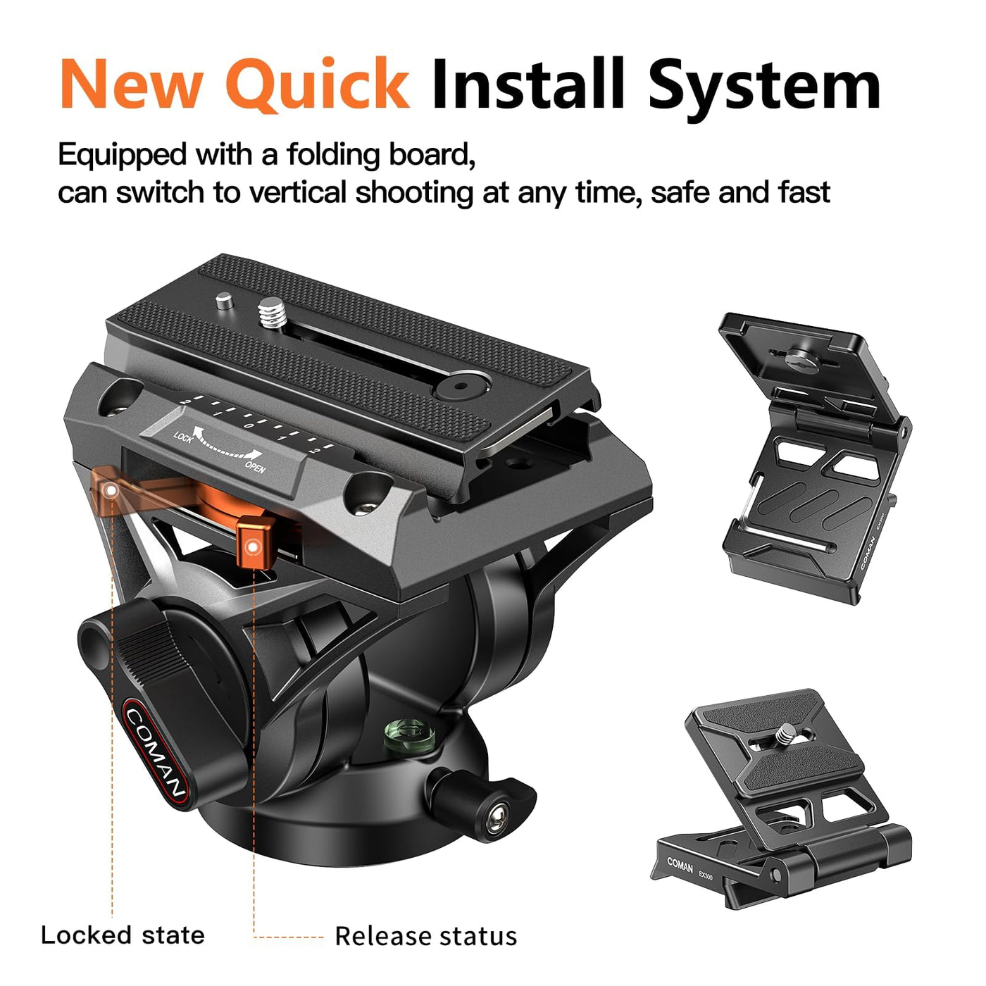 Coman Fluid Head Tripod For Dslr Camcorder,Camera Monopod Tripod 360 Pan&+90/ 70 Tilt,New Q6 Fluid Head Aluminum Alloy Qr Plate
