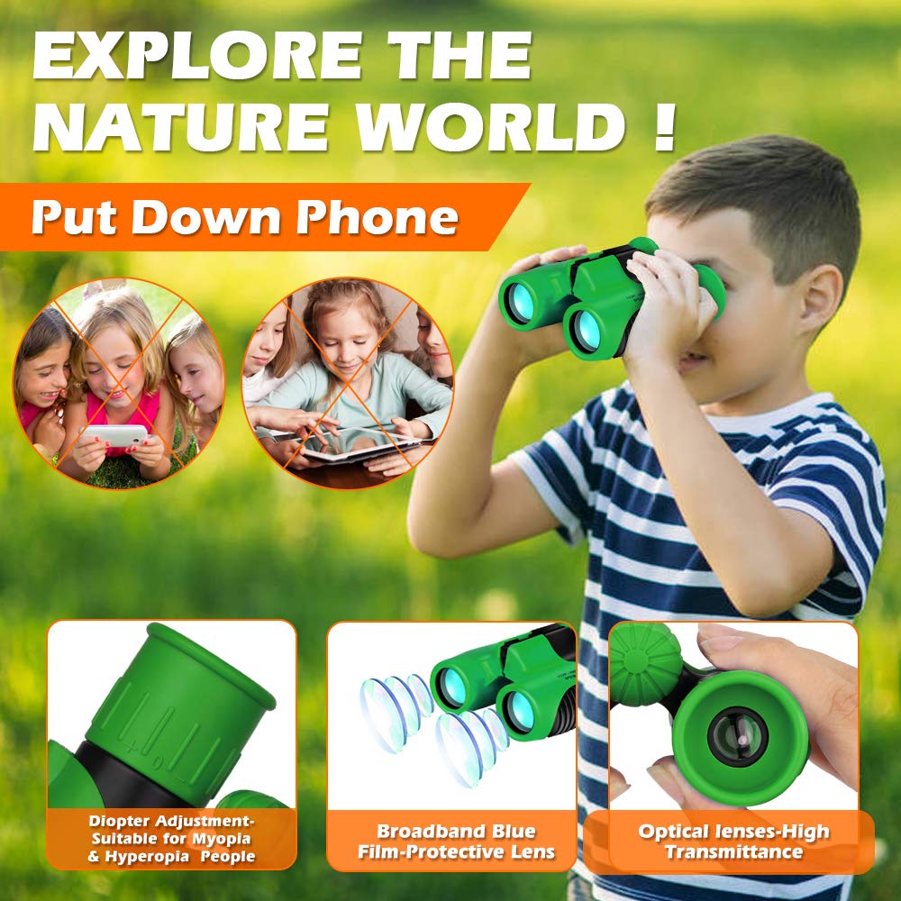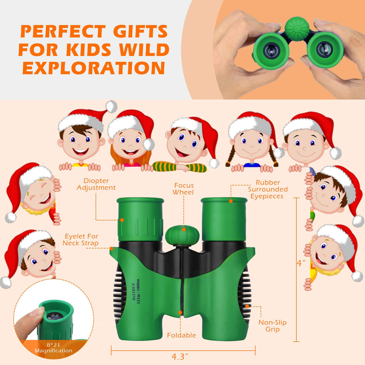Compact Mini Binoculars For Kids 8X21 Zoom Kids Binoculars Toy Gift Shock Proof For 3 4 5 6 7 8 9 10 11 12 13 Years Old Boys G