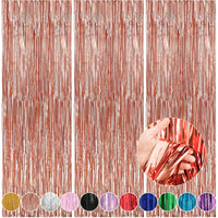Crosize 3 Pack Backdrop Curtain, 3.3 X 9.9 Ft Rose Gold Foil Fringe, Streamers Birthday Party Decorations, Tinsel Curtain For Pa