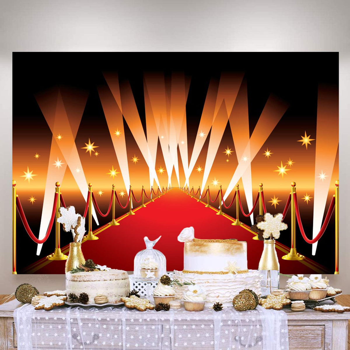 Csfoto 8X6.5Ft Red Carpet Backdrop For Photoshoot Movie Theater Movie Night Theme Birthday Party Decorative Background Banner Vi