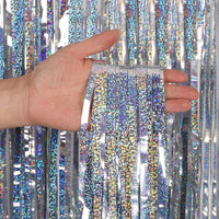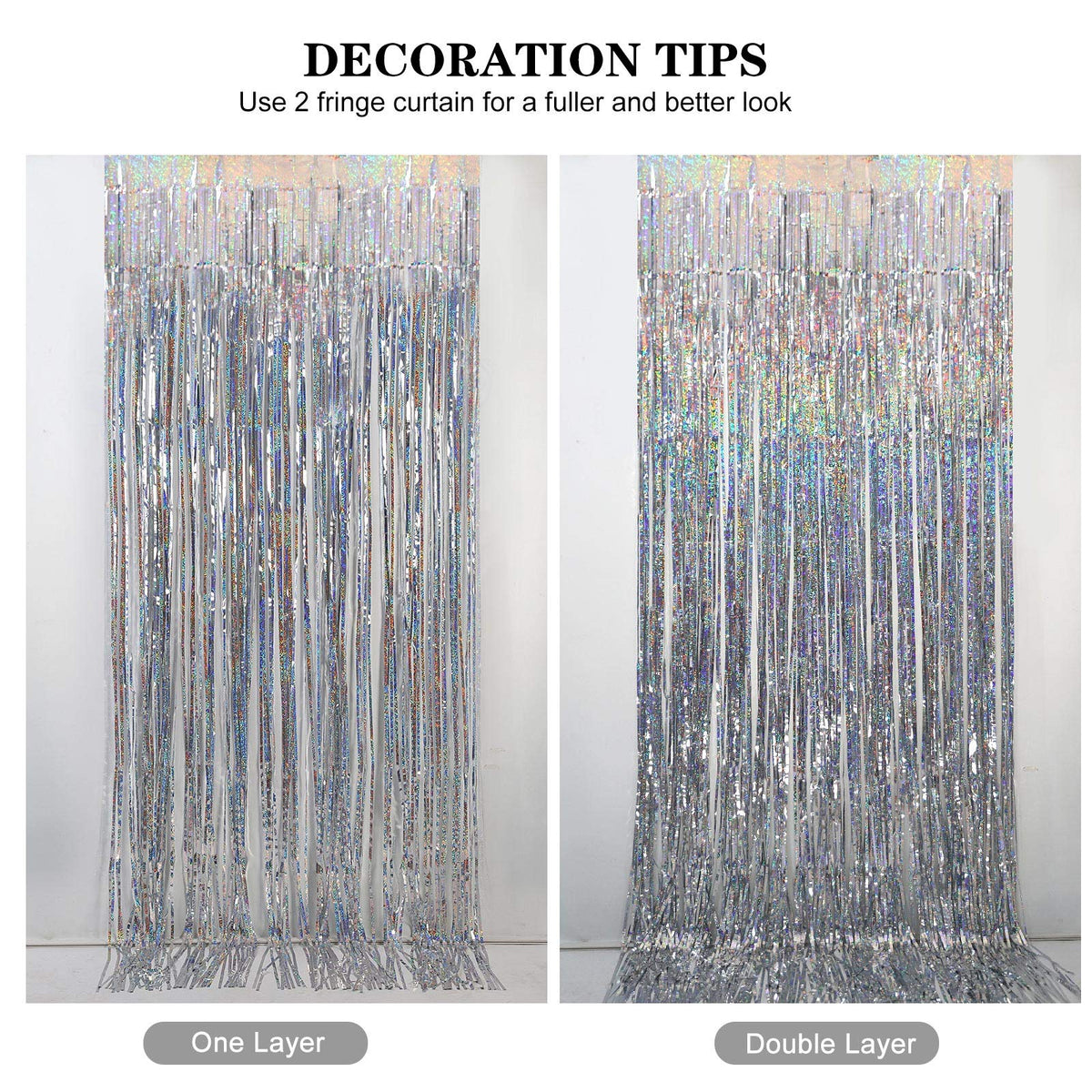 Let'S Start Wonderful Party With Foil Curtain Everyone Loves Party! We Are So Glad To Recommend You A Gorgeous Product For Party Backdrops,Enjoy The Party With This Fringe Curtain Backdrop Our Foil Striped Rain Curtain Curtains Which Are Suitable For Any Theme Birthday Wedding Baby Shower Or Other Celebration Party Decorations. Lightweight And Durable Curtain Backdrop You Can Double Layer This Backdrop Curtain Set If You Want More Perfect Effect Why Choose Us This Foil Fringe Curtain Which Will Hang Effortless Above Door,Windows Or Wall,New Laser Model Unique,Giving You A Stunning Backdrop Shimmer Equipped With Free Double-Sided Tape On The Back Of Each Curtain(No Other Tools Are Needed) The Adhesive Tape Is Specially Designed For Household Wall So That You Can Safely Use It On Stable Wall Finishes To Temporarily Hang Lightweight Party Decor The Beautiful Tinsel Backdrops Are Good For Serving As Party Decorations, Photography Curtains, And So On; You Will Be Surprised At The Atmosphere And View They Create, They Can Add Sparkle As Decorations For Parties While Bringing Fun For Your Friends Or Families Specifications Material: Metallic Tinsel With Laser Design Color: Foil Fringe Curtain With Laser Model Width: 1 M/ 3 Feet Length: 2.5 M/ 8 Feet Package: 2Pcs