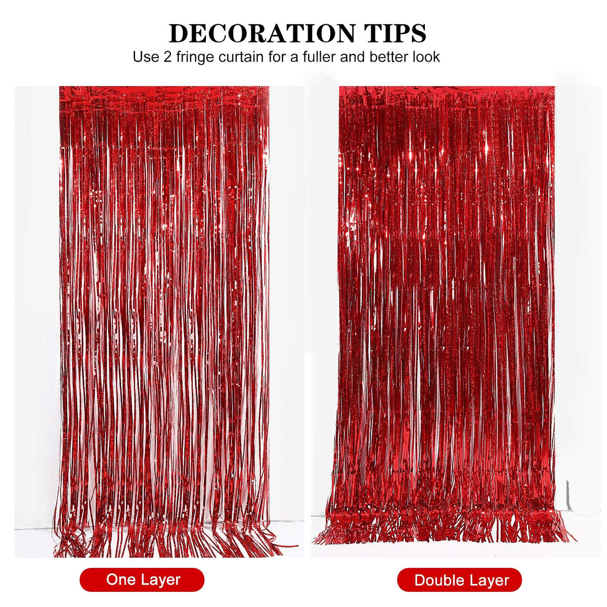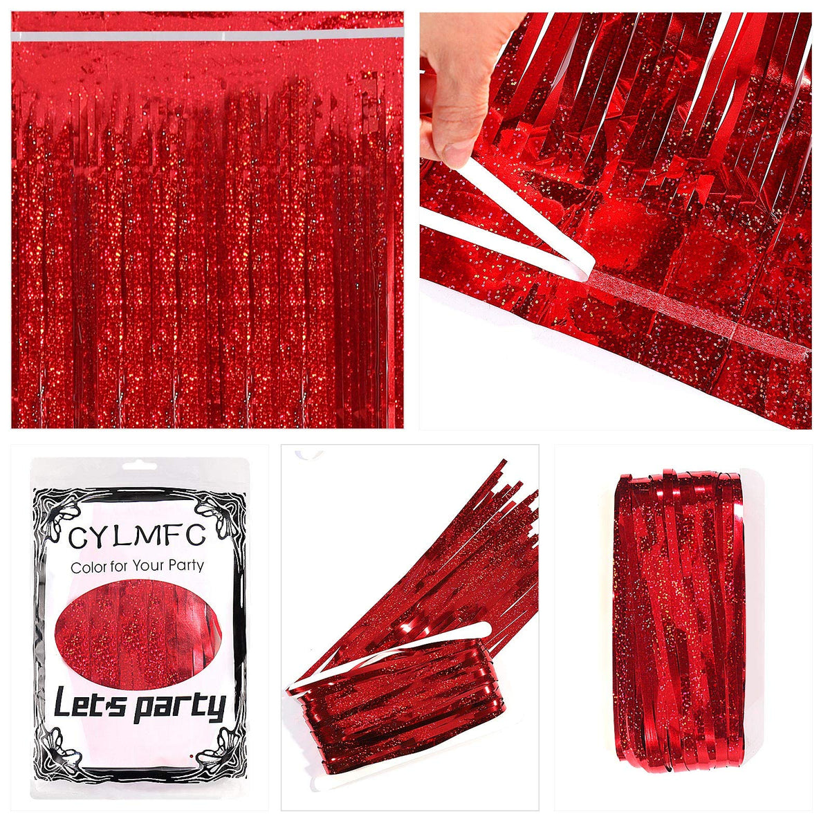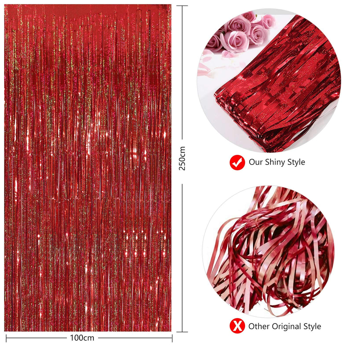 Cylmfc Metallic Tinsel Curtains, 2 Pack 3X8Ft Foil Fringe Backdrop For Birthday & Graduation Decorations, Red