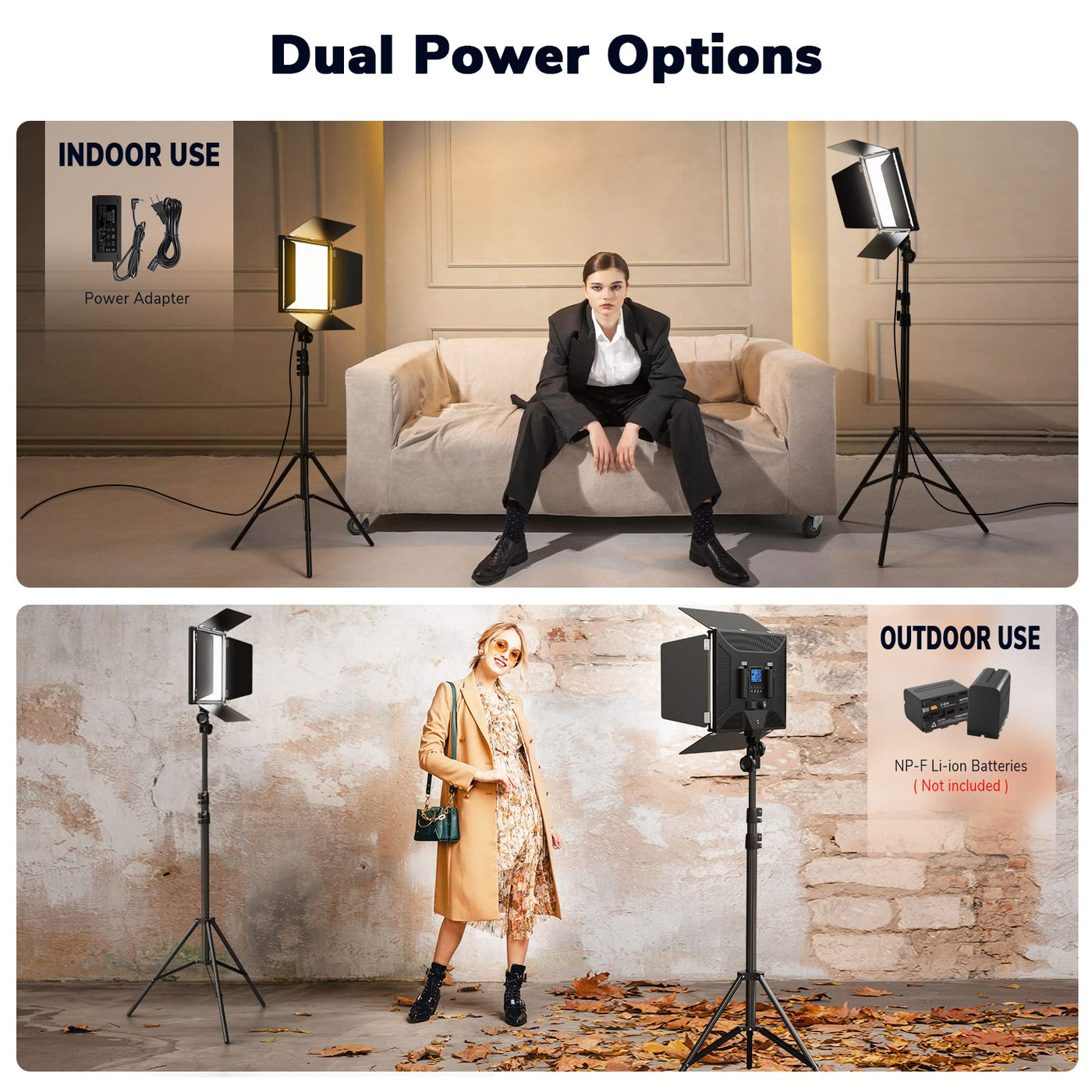 D50 Photography Lighting With Barn Door, 2-Pack 15.4 Led Video Light With Remote, 45W 3000K-8000K Dimmable Bi-Color Panel Light