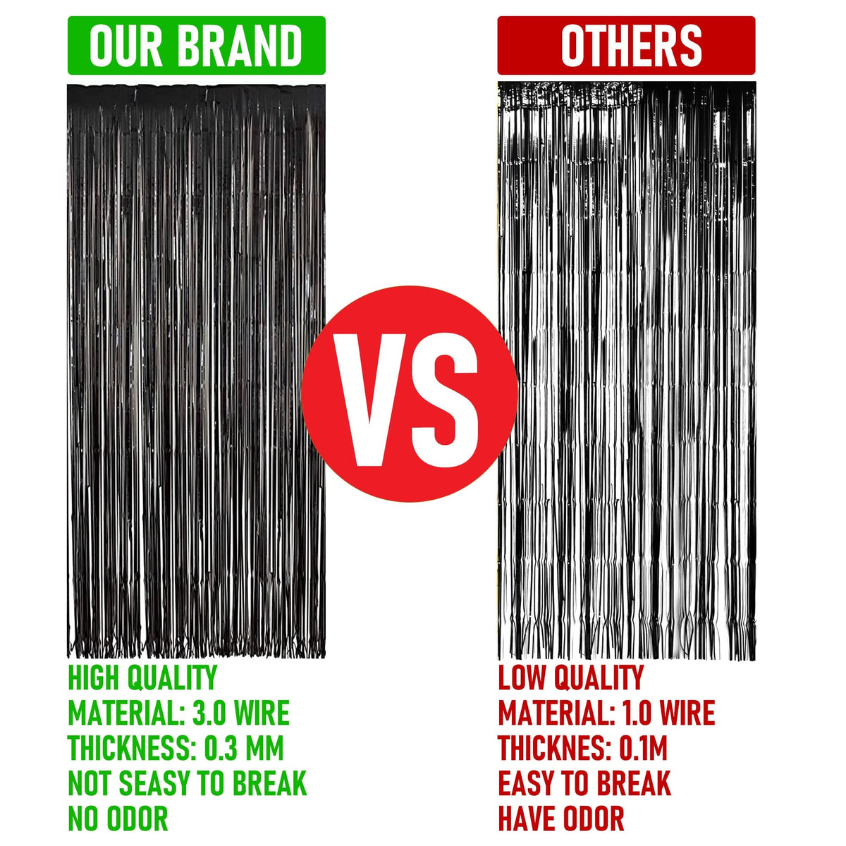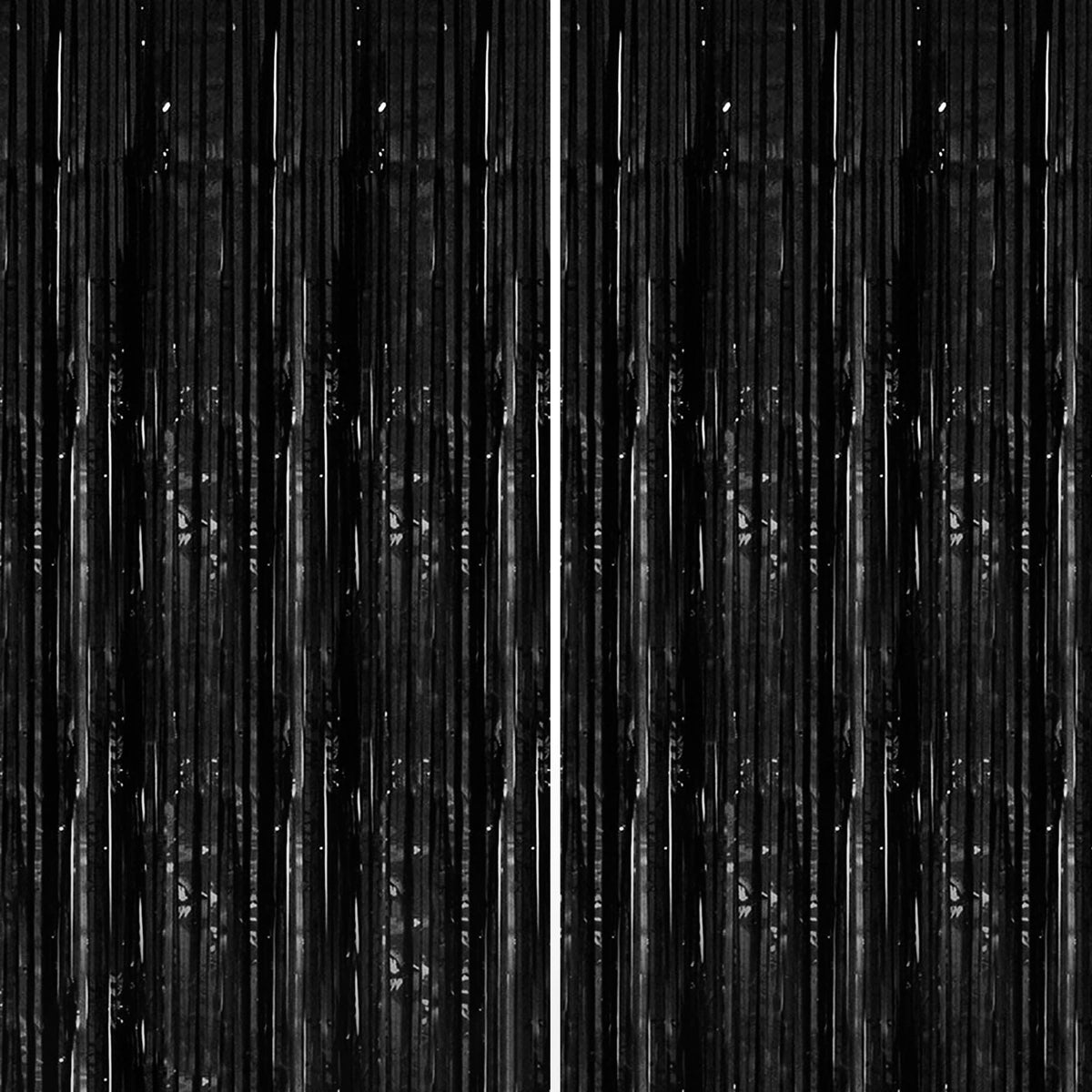 Dazzle Bright 2 Pack Black Backdrop Curtain, 3Ft X 8Ft Metallic Tinsel Foil Fringe Curtains Photo Booth Background For Baby Show