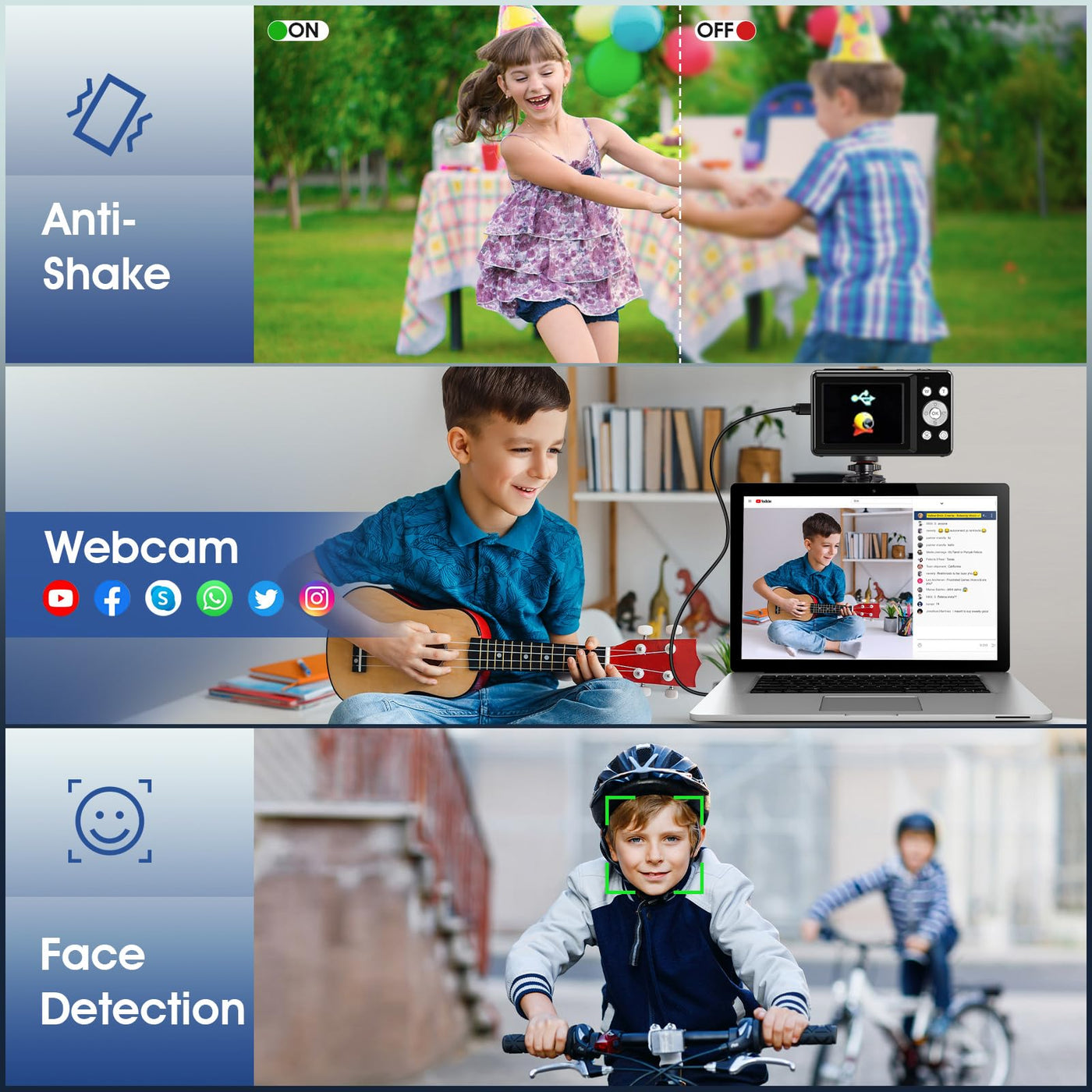 Beginners' Digital Camera For Photography And Video&Nbsp;Recording---Not For 2-3 Years Toddlers&Nbsp;And The Professional, We Designed This 1080P Small Digital Camera For 4-12&Nbsp;Years School Children&Nbsp;And Beginners.Advantage Compared With Other Digital Cameras:Entry-Level Photography Camerathe Kid'S&Nbsp;Digital&Nbsp;Camera Features All Essential Photography Functions, It Can Meet&Nbsp;The Needs Of Recording Memorable Moments With Friends And Family Members.Super Easy To Operatesay Goodbye To Complicated Manual Settings&Nbsp;And Only Need To Press The Shutter, It Will Deliver A Natural Color Image And Photo-Shooting Is Just A Piece Of Cake.Unique Shapepalm-Sized, Compact, And Lightweight Features And Stylish Looks Make This Compact Digital Camera Outshine Other Bulky Old-Fashioned Cameras. Children'S Hands Can Grasp It Very Well And Carry It Everywhere With The Lanyard.Better Image Qualitywith Advanced Cmos Image Sensor, 44&Nbsp;Megapixels&Nbsp;And 1080P&Nbsp;Video Resolution, The Digital Camera For Photography&Nbsp;Can Take More Vivid Images&Nbsp;And Capture Good Moment At Home Or Travel!&Nbsp;