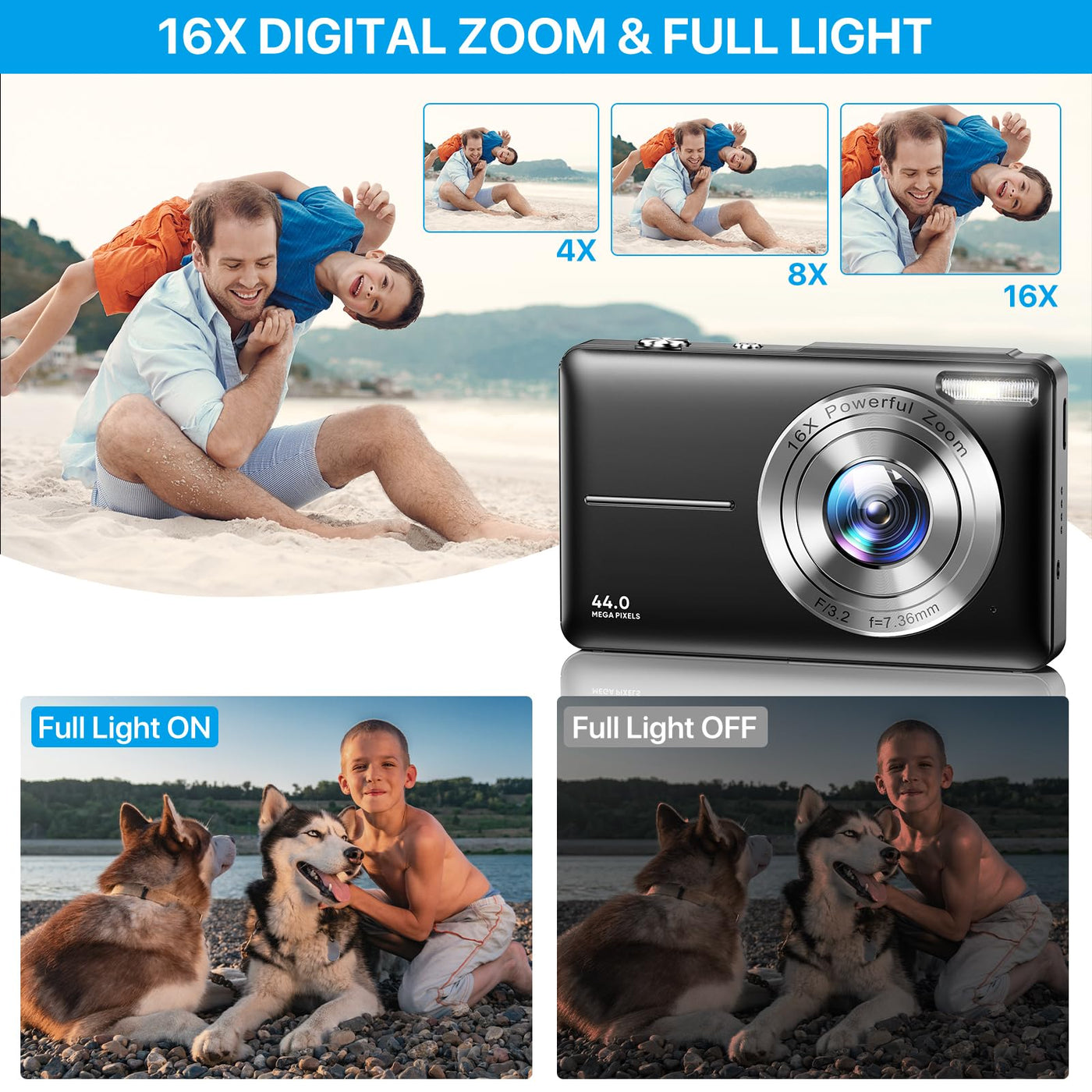 Digital Camera, Upgraded Fhd 1080P Digital Camera With Strap 32Gb Sd Card 16X Digital Zoom Compact Point And Shoot Camera For Ki