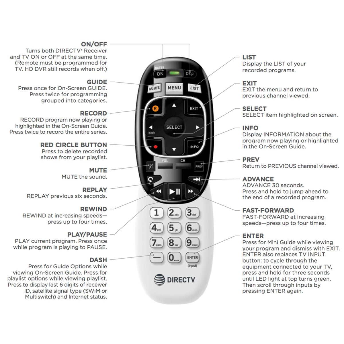 DIRECTV RC73 Remote Control - 2 Pack, IR/RF, Black, Model 4336303112, PVC Material