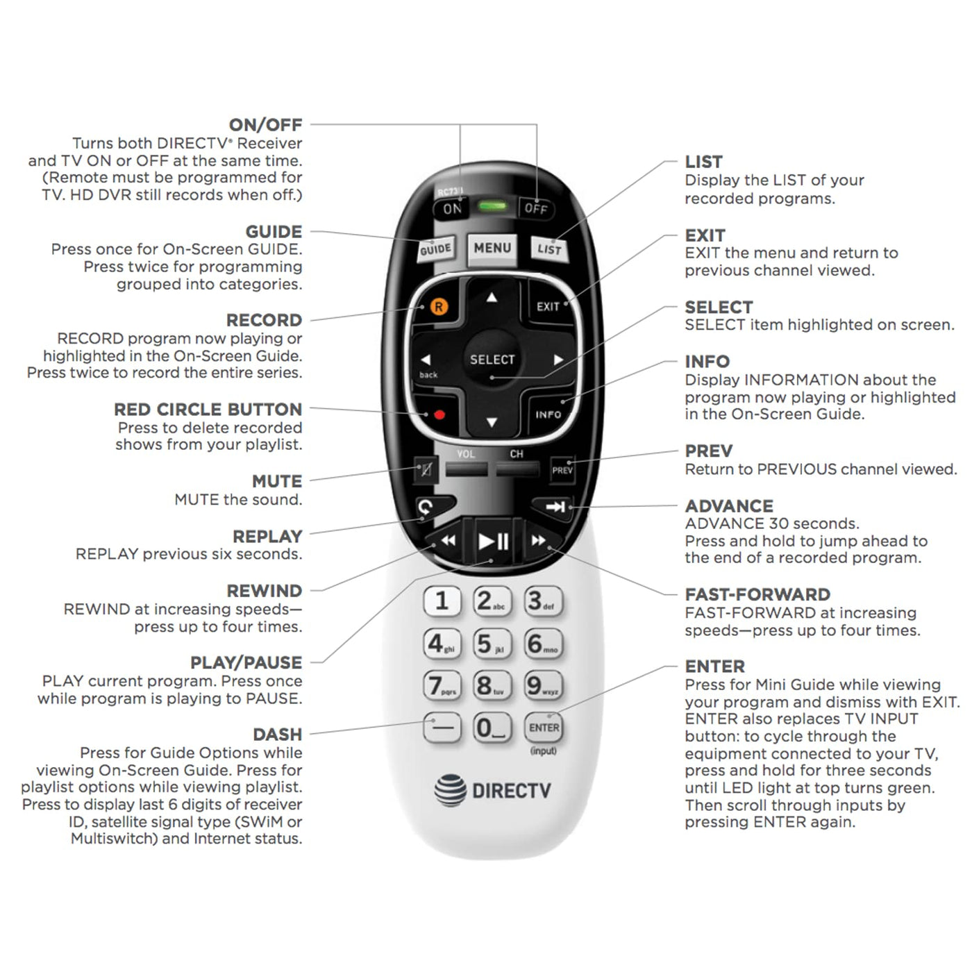 The DIRECTV Genie Remote is a state-of-the-art universal remote designed to enhance your viewing experience. Ideal for users of DIRECTV receivers, this remote simplifies access to your favorite shows and channels while providing seamless control over your entertainment system.