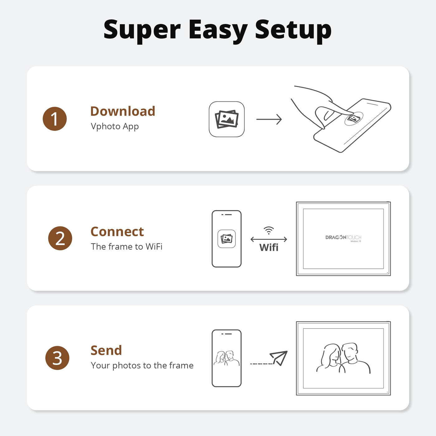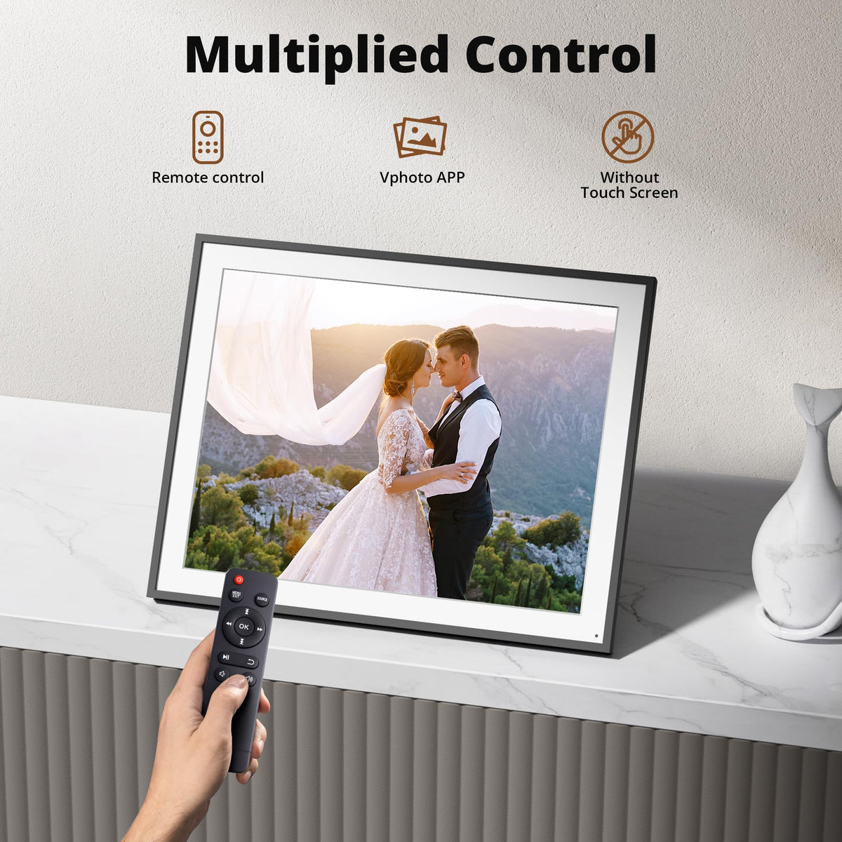 ?Stay Connected With Family?- This Digital Picture Frame Can Update Your Latest Pictures With Loved Ones Wherever You Are. It Is An Ideal Gift For Various Occasions, Specially Designed As A Bridge For Connecting Elders With The Younger. To Create More Connections, You Can Even Invite Family Members To The Frame Where They Can Send Photos To It. | ?Easy And Fast?- Set It Up In 1 Minute. This Wi-Fi Cloud Electric Frame Is User-Friendly. All You Need To Do Is Connect It To Wi-Fi And Log In. For This Digital Picture Frame, Pictures Are Loaded From Phone Via Vphoto App. Once You Send Photos To The Frame, They Display Automatically. | ?Larger Screen?-19 Inch Large Ips Screen Paints Fascinating Picture Quality. Compared With Tn One, The Ips Display Provides Brighter Images And A Wider Viewing Angle. Modern 19 Reproduces The Beauty Of Your Life From Every Angle With No Distortion. | ?Auto Rotate & Brightness Adjustment?- The Digital Picture Frame Can Automatically Switch Between Portrait And Landscape Orientations. It Can Either Be Placed On A Table Or Hung On A Wall. In Addition, The Screen Brightness Can Be Adjusted Automatically Based On Changes In Ambient Light. (Remote Control, Not Touchscreen) | ?64Gb Large Memory?Ready To Use. Built-In 64Gb Memory Is Prepared To Store Your Highlights And Moments, With Space For 100,000+ Pictures. No Extra Expenses For A Tf Card.