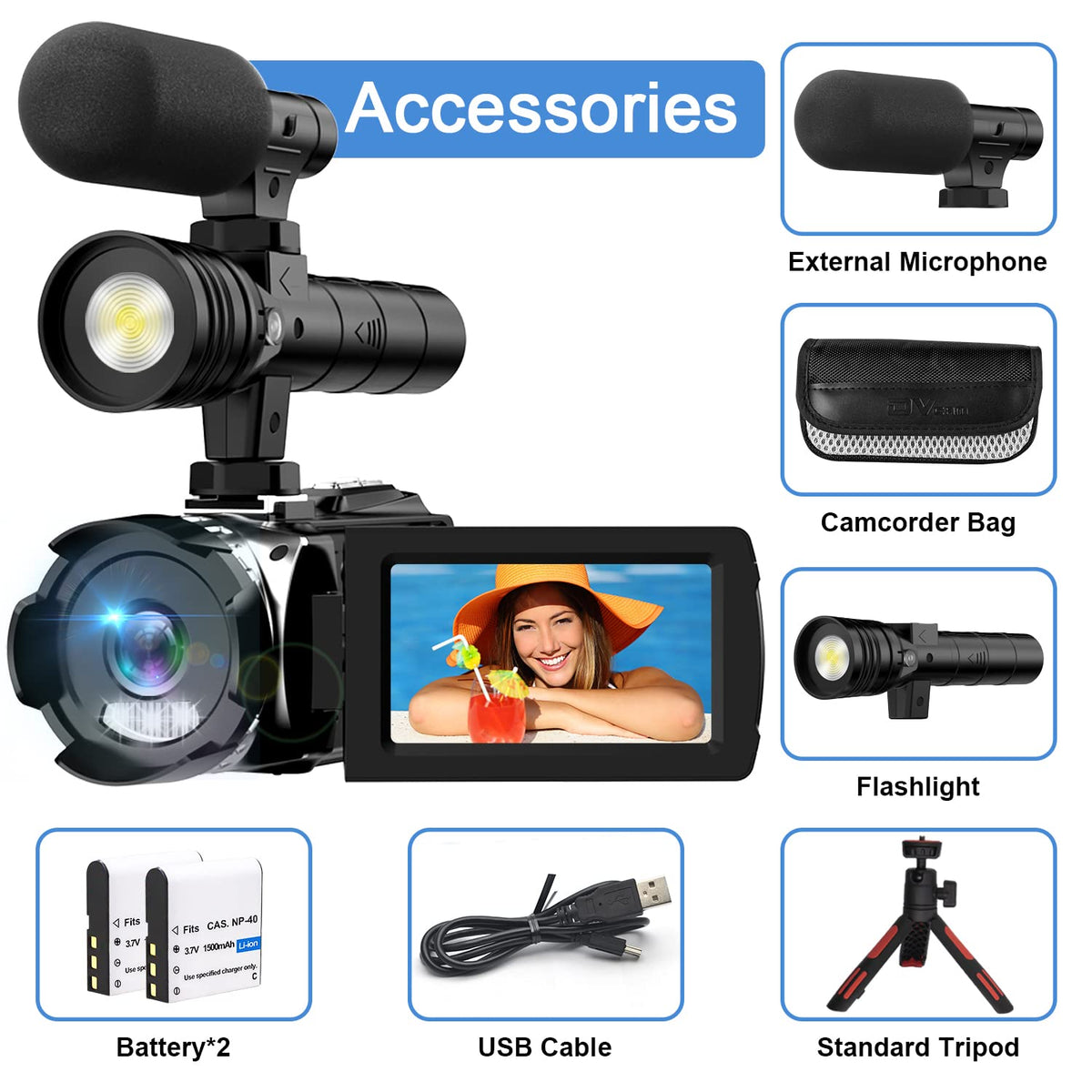Dumjug 4K Night Vision Camcorder Digital With Ir Light,270 Youtube Vlogging Camera Recorder, 20X Digital Zoom, Full Hd 3.0 Camco