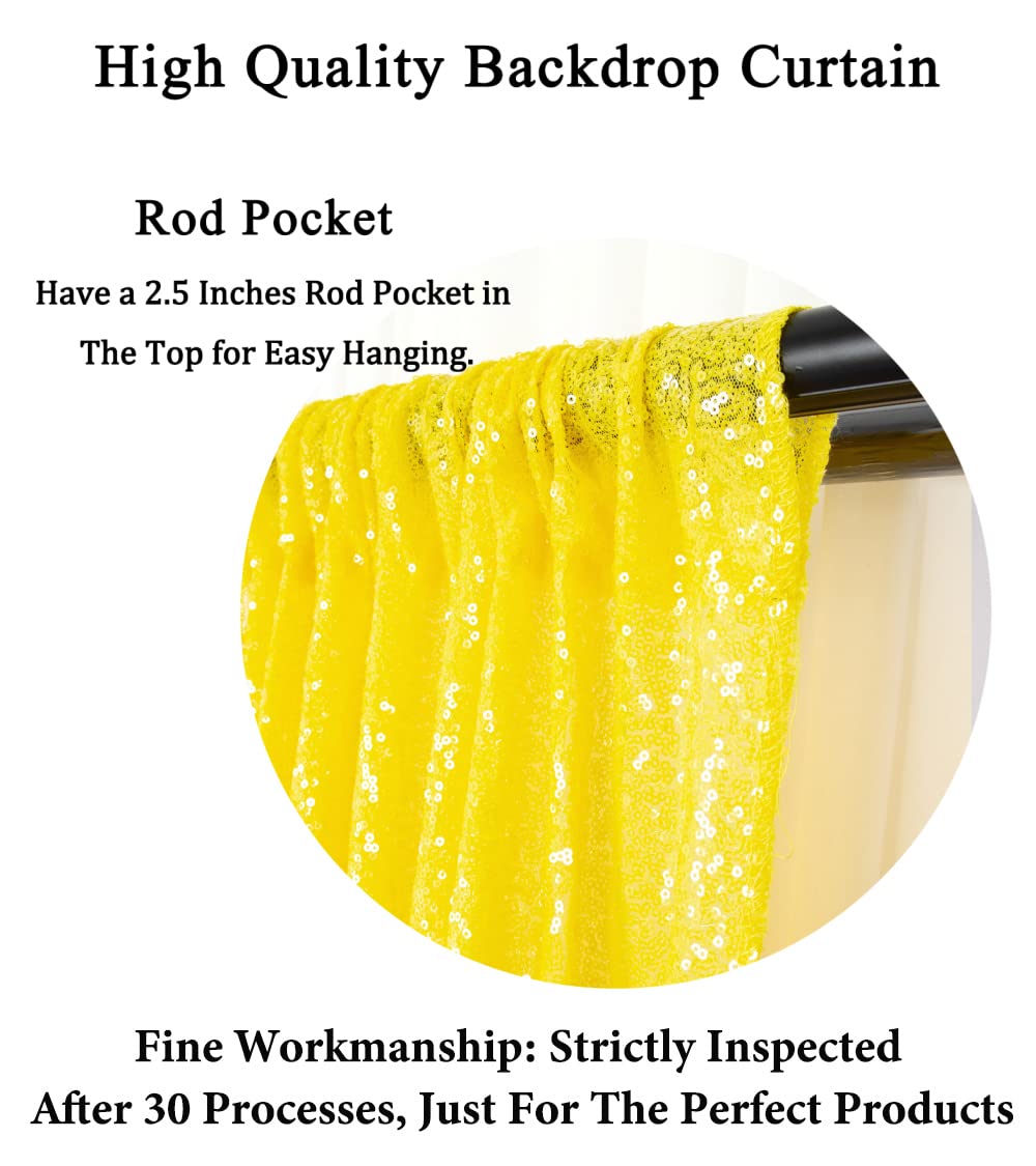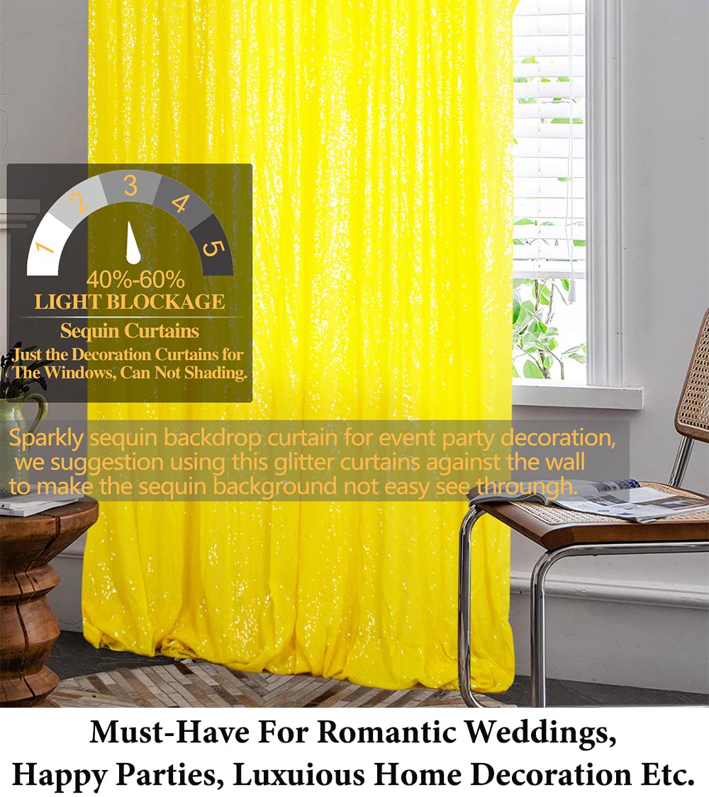 Duobao 2Ftx8Ft Sequin Curtains 2 Panels Yellow Sequin Photography Backdrop For Prom Party Payette Sequin Curtain 8Ft Sequin Show