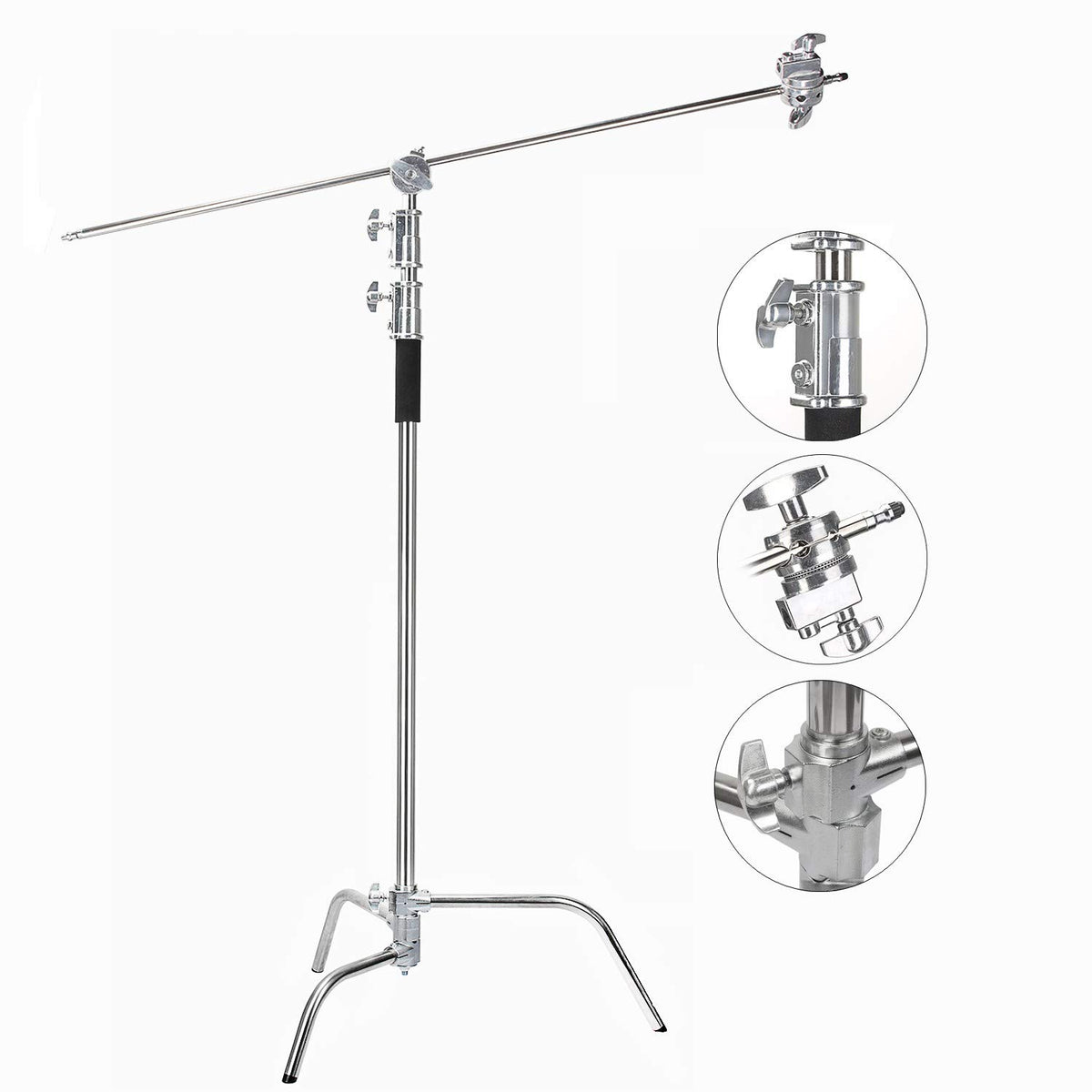 Descriptions:Used For Mounting Strobe Lights, Reflectors, Umbrellas, Softboxes And Other Photographic Equipment; Its Solid Locking Capabilities Ensure The Safety Of Your Lighting Equipment When In Use.Sandbags Can Be Placed On The Legs To Increase The Base Weight(Not Included).The Light Stand Is Made Of Lightweight Metal Making It Strong For Heavy Duty Work.Its Solid Locking Capabilities Ensure The Safety Of Your Lighting Equipment When In Use.Specifications:Center Stand Maximum Height: 10.8 Feet/3.30 Meterscenter Stand Folded Height: 4.9 Feet/1.5 Metersboom Arm Length: 4.2 Feet/1.28 Metersmaterial: Stainless Steelcolor: Silverpackage Including:1 X Center Stand1 X Eachshot Bag3 X Wheels1 X Holding Arm2 X Grip Heads
