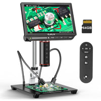 Q: How does the smart controller enhance the user experience with the Elikliv EM4K-AF?A: The smart controller included with the Elikliv EM4K-AF allows users to capture images and record videos effortlessly without touching the display, ensuring stability and clarity. This feature, combined with the included 64GB storage card, enhances convenience during microscopy.