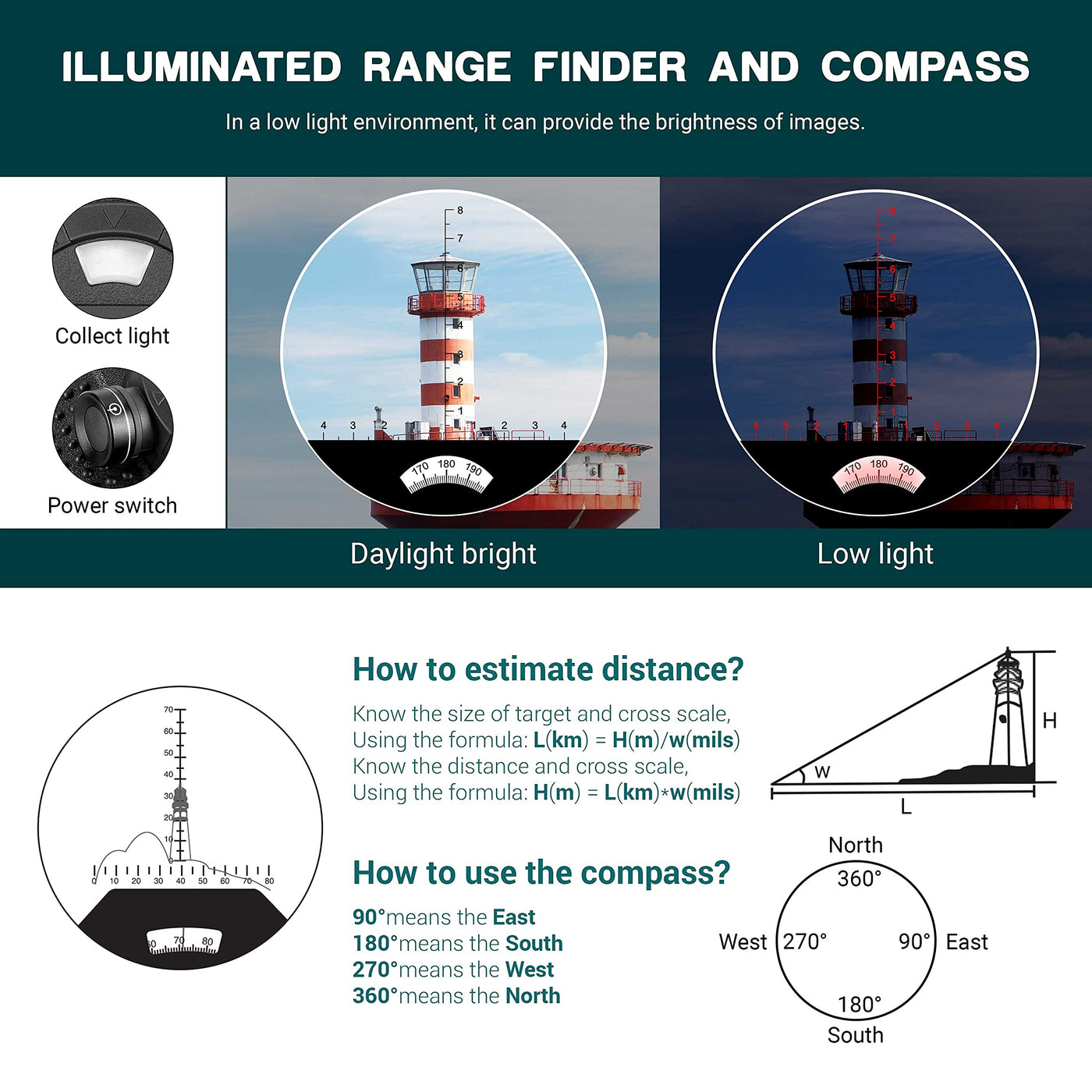 Esslnb 10X50 Marine Binoculars For Boating With Illuminated Rangefinder And Compass Ipx7 Waterproof Binoculars Bak4 Military Bin