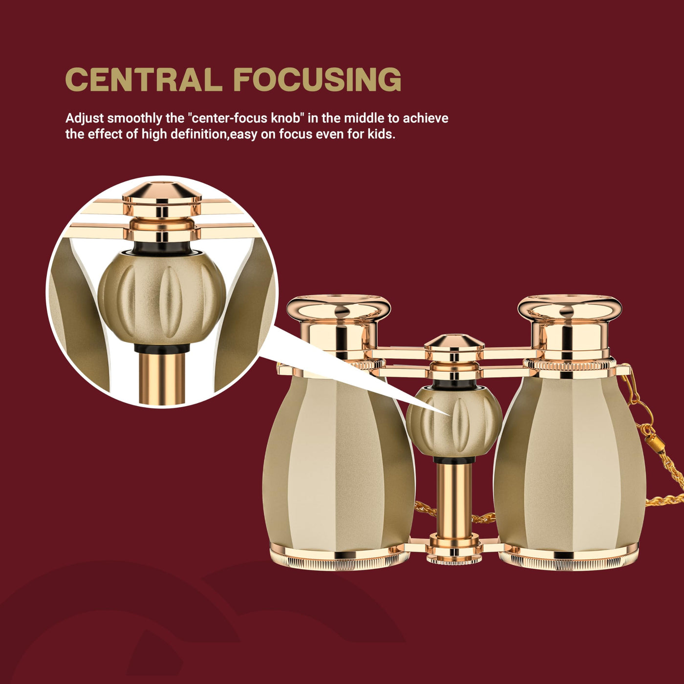 Features: This New Style Of Theater Binoculars With Crystal Clear Optics Is A Better Choice, Enjoying Opera Or Theater Journey. Optics Is Newly Improved And Many Details Are Higher Demand To Produce. The New Generation Of Concert Glasses With Gold Chain Harmonizes Perfectly With Your Outlook.You Can Use It By Yourself And Its Also Really Beautiful And Practical. Our Binoculars Will Bring You Four Times Closer To The Action. The Application Of The Binoculars Is Very Widely Such As Visiting Horse And Car Races,Going To The Circus, Watching Sports Meeting,Or Enjoying Opera And So On. Mini Binoculars Specification: Magnification: 4X Eyepiece Diameter:13.5Mm Objective Lens Diameter : 30Mm Lenses: Multi-Coating Focus Mode: Central Focusing Field Of View :122M/1000M Eye Relief: 7.5Mm Close Focus Distance: 4M Field Angle: 7 Degrees Package Included: 1 X Theater Binocular 1 X Cleaning Cloth 1 X Soft Bag Pounch