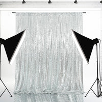 Eternal Beauty Silver Sequin Wedding Backdrop Photography Background Party Curtain, 8Ft X 10Ft