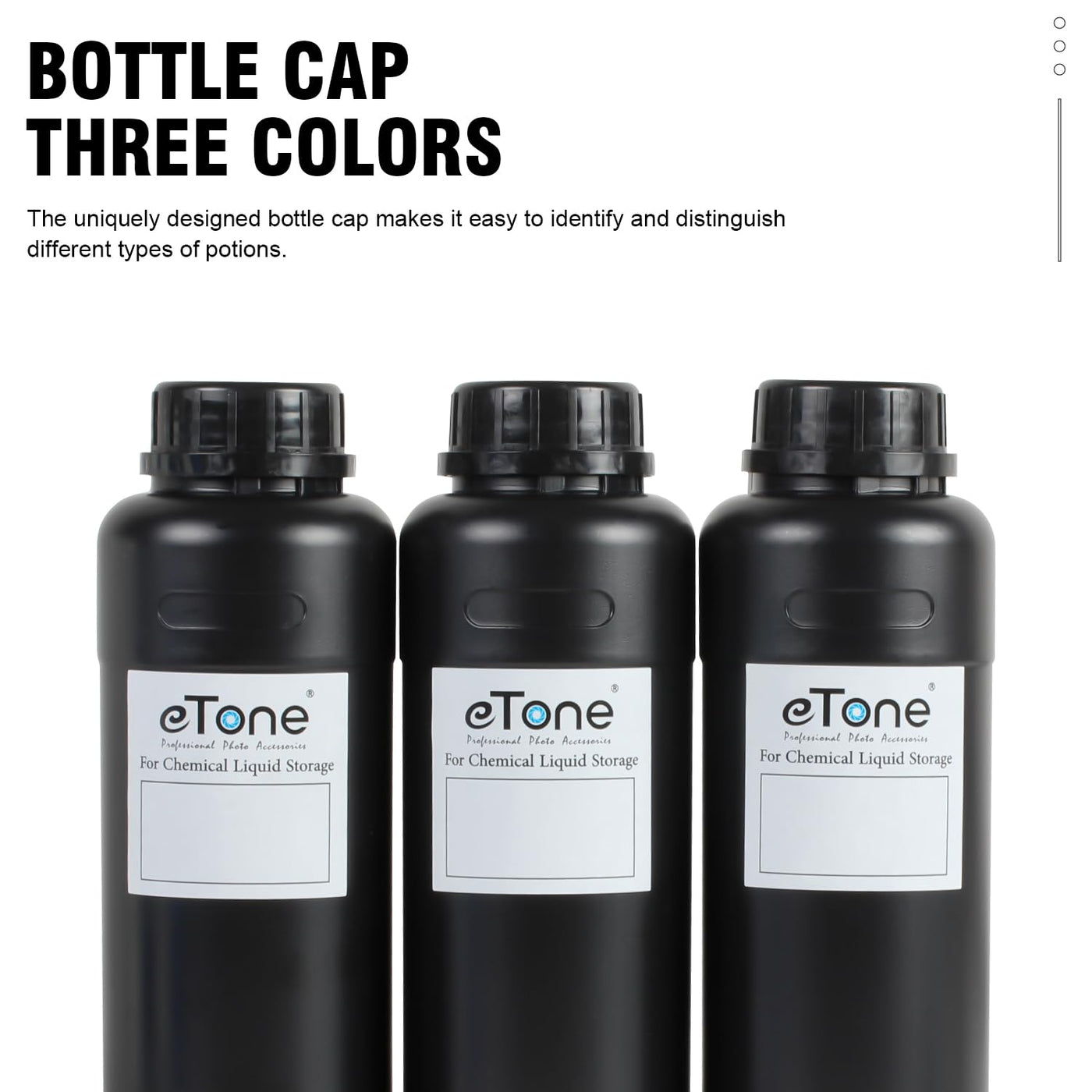 Etone 3X 500Ml Darkroom Chemical Storage Bottles With Caps Film Photo Developing Processing Equipment (Black)