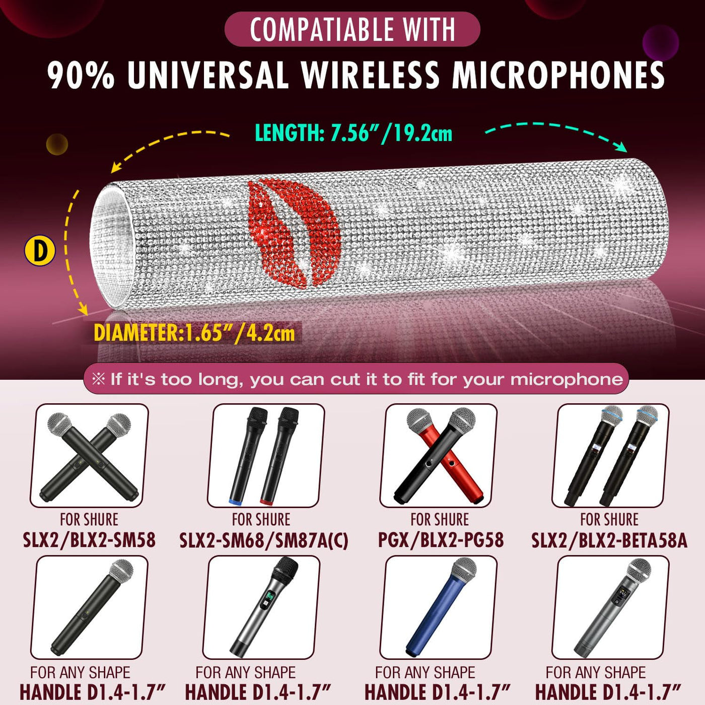 Features & Benefitsget This Mike Cover And Youll Definitely Feel Like A Star At Coachella. Sleeve Really Sparkles In The Stage Lights.Bring Some Glam And Sparkle To Your Performance And Feel Like A Rock Star With These Sparkly, Rhinestone Mic Stand Covers!A Microphone Cover That Not Only Showed Your Love Of Colour But Also To Add Individualism To Your Stage Presence And Glitter Under The Lights.This Red Lip Glitter Mic Sleeve Can Personalize Your Microphone. A Unique Microphone Sleeve To Add Individualism, Colour And Stage Presence For Any Vocalist.Beautiful Rhinestone Microphone Sleeve Cover For Corded And Wireless Handheld Mics, These Make The Perfect Addition To Your Mic!These Mic Sleeves Are For Use In The Professional Setting Or For Fun At Karaoke Clubs And Live Singing, Wedding And Stage Party Show.