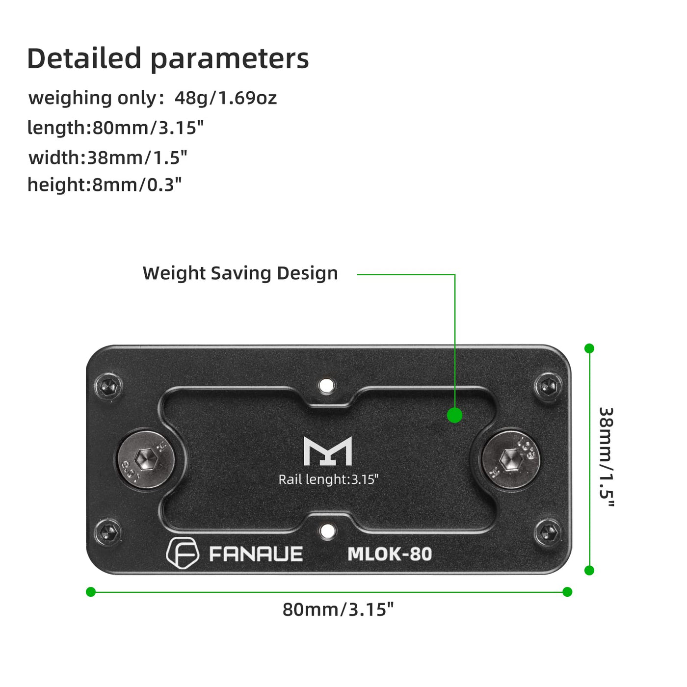 Fanaue Mlok Arca Rail Tripod Mount Adapter Compatiable Arca Swiss/Rrs Dovetail Tripod Ballhead Quick Release Plate M Lok