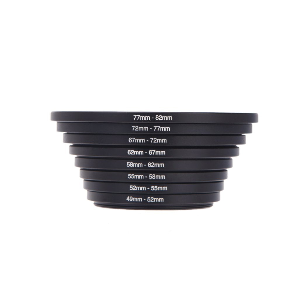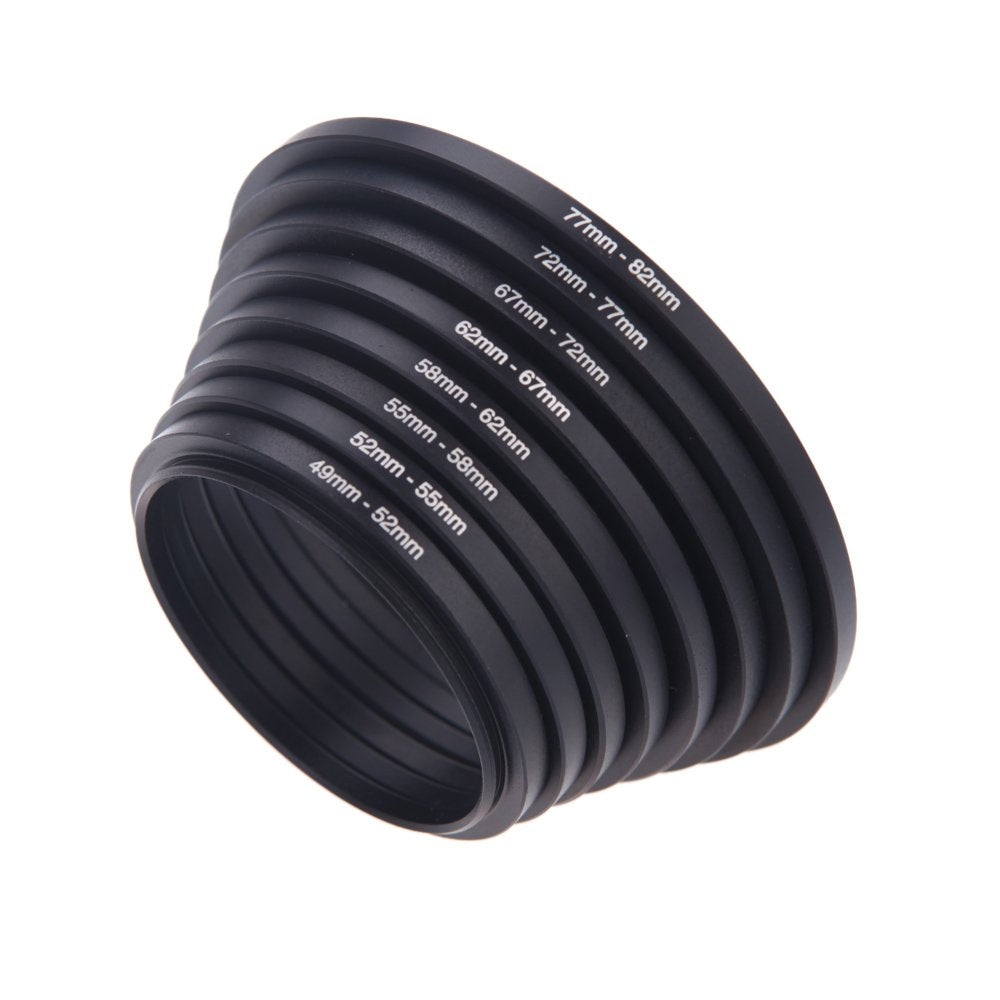 The Ring Adapter Easily Screws Onto The Front Of Any Lens, And Converts The Thread Size Of Your Lens To The Thread Size Of Any Other Accessory (Such As Filters, Hoods, Flashes And Lens Converters).Features: Step Up Ring Set Allows Bigger Size Filter To Fit On Lens With Smaller Filter Thread Size.&Nbsp; All The Rings Can Be Screw Together For Easy To Store And Carry. Made Of High Quality Anodized Black Aluminum. The Set Also Can Be Used As A Lens Hood, This Means That You Don'T Need To Waste Extra Money To A Single Lens Hood. This Is A Very Perfect Product For Your Photography.