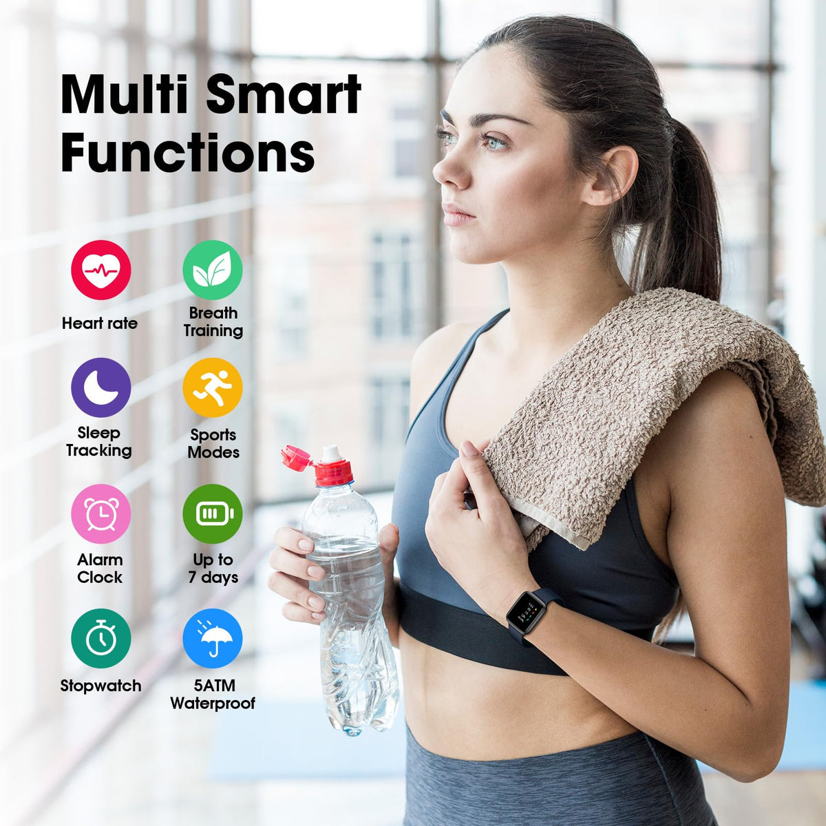 Fitness Tracker Watch With Heart Rate Monitor, Activity Tracker With Pedometer, Sleep Monitor, Calories & Step Counter, 5Atm Wat