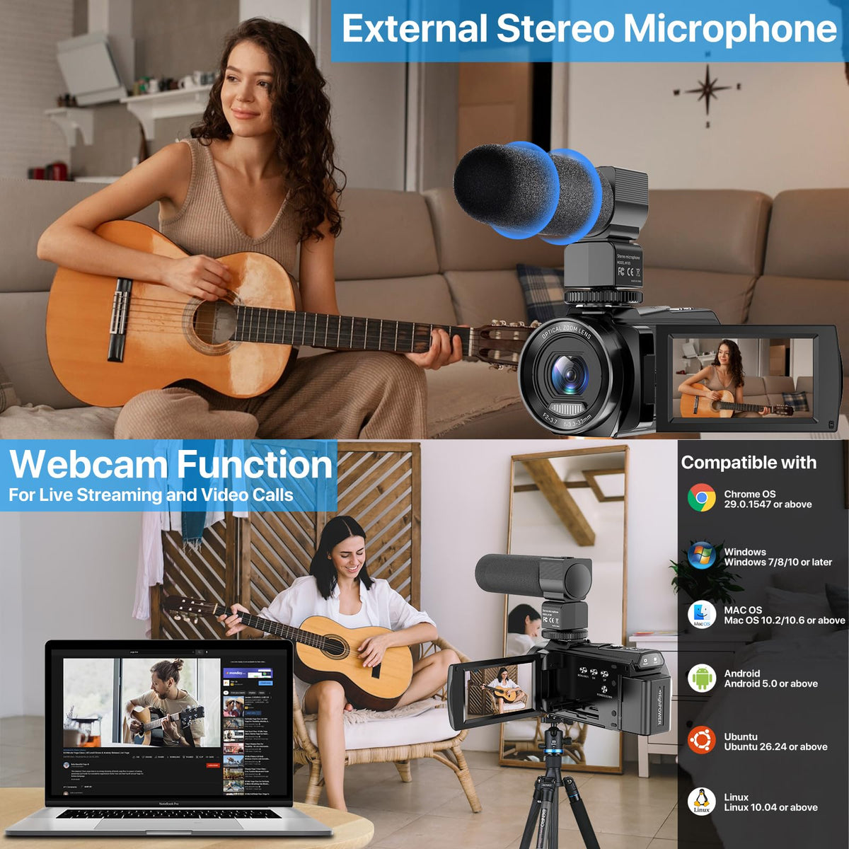 Fjfjopk 5K Video Camera Camcorder, 10X Optical Zoom 48Mp Uhd 30Fps Vlogging Camera For Youtube, Photography Recorder Camera With