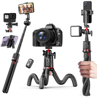 Flexible Phone Tripod Selfie Stick, Octopus Camera Tripod Iphone Holder Stand With Cold Shoe Mount, Travel Tripod Flexible Legs