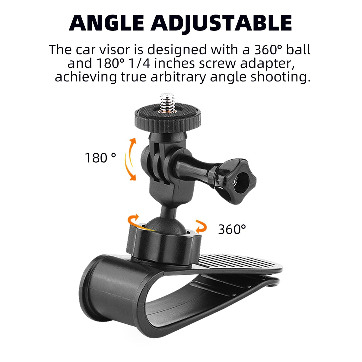 Product Specifications: Product Name: Car Visor Mount Inside Compatible Model:Compatible With Gopro/Insta360/Osmo Action 4 3/Osmo Pocket 3 Materials:Plsatic Color:Black Product Features: 1.360 Degree Rotation: The 360-Degree Rotation Ball Can Adjustment More Angel Shoting,Allows You To Adjust The Best Shooting Angle. 2.Easy Installation:Just Clip On The Sun Visor With Onesecond! 3.Nol-Slip Design:The Car Sun Visor Mount Adopts A Convex Design At The Clamp Mouth To Enhance The Friction Of The Contact Surface And Provide A Stablity During Shooting. 4.Widely Compatible: The Car Vison Mount Includes A 1/4 Adapter And Phone Clip, Compatible With Most Sports Cameras ,Suitable For Gopro Hero 12/11/10/9/8, Insta360, Dji Osmo Action 4/3/2, Akaso And Iphone 15 14 13 Adorid Etc Smartphone. Package List: 1 X Car Sun Vison Mount&Nbsp; 1 X 1/4 Adapter 1 X Phone Clip&Nbsp;