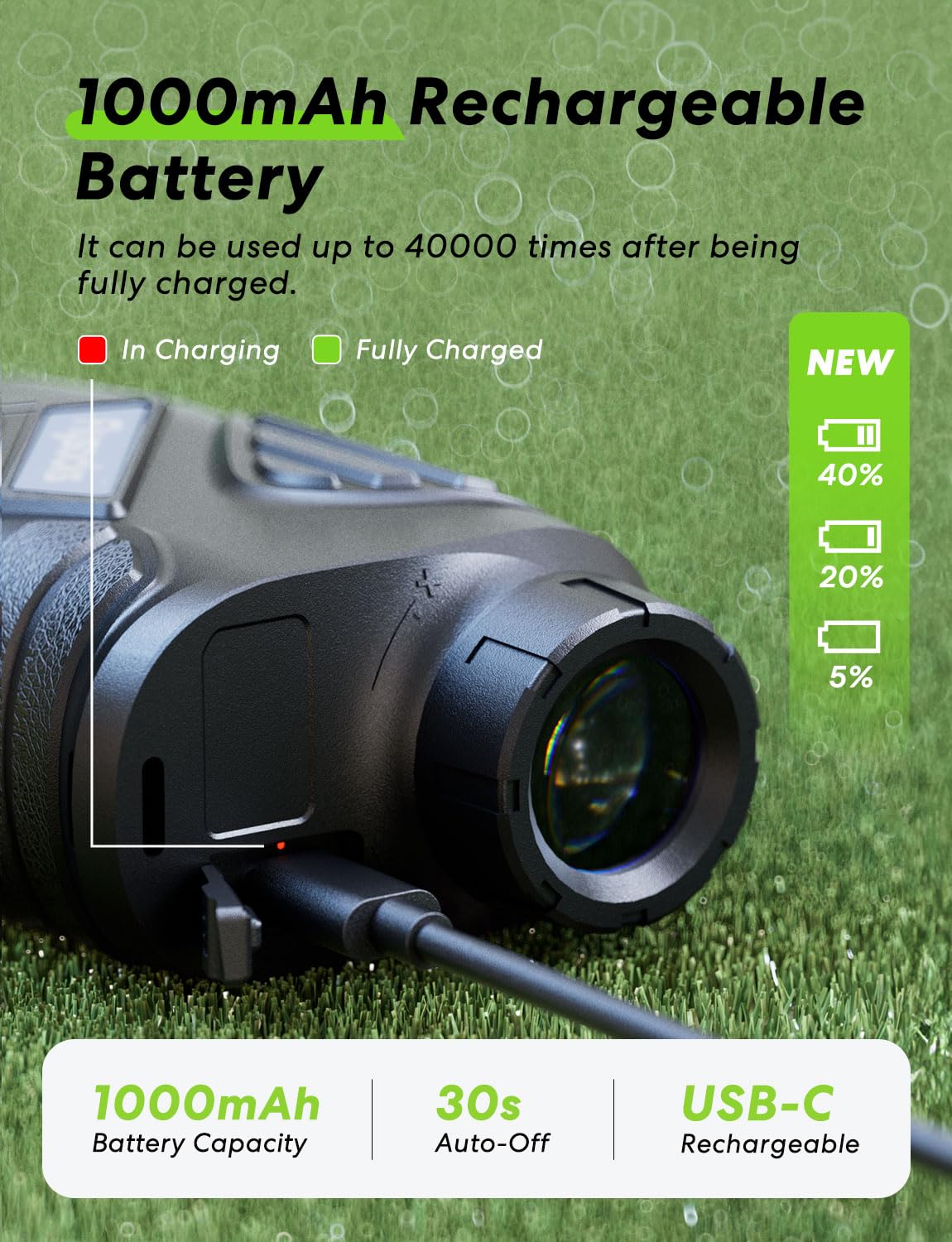 Upgrade Your Hunting Gear: The Hunting Laser Rangefinders Can Be Used To Quickly Measure Distance, Height, Angle, And Speed. Up To 1200 Yards With 7X Magnifications. Long Press The M Button To Switch Units And The Default Is Yards, Not Meters. The Rangefinder Is Easy To Use | High Precision Laser Rangefinder: The Rangefinder With Slope Mode Is Designed For Golf And Can Quickly Calculate Distances Up To 1200 Yards. This Rangefinder Also Includes A Rainy Mode Designed Specifically For Rainy Days To Effectively Reduce The Impact Of Rain On Accuracy | Multiple Modes: The Range Finder For Shooting Offers Multiple Modes. Its Easy To Operate And Can Switch Between Continuous Scan Measurement, Two-Point Height Mode, Rainy Mode, Golf Slope Mode, Horizontal Mode, And Speed Mode. Laser Rangefinders Support The Display Of Units In M/Yd/Ft And Can Measure Speed In Mph. This Rangefinder Is A Great Option For Archery, Shooting, Golf, And Target Practice | Portable Range Finder: With An Ergonomic Design, The Range Finder Lightweight And Easy To Handle. It Comes With A Lanyard That Makes It Easy To Carry Around, Keeping It Handy Whenever You Need It. This Is A Great Gift For Any Family Member Or Friend. If You Ever Have Any Issues With This Rangefinder, Our Customer Service Team Is Always Here To Help