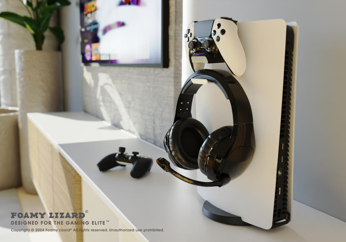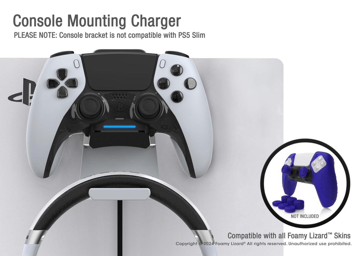 Updated Design & Function Now Compatible With The New 2023 Edge Controller & Standard Ps5 Dualsense Controllersleek Seamless Design | Designed To Blend In With Your Ps5 Console & Your Ps5 Controllers, Please Note: Will Not Fit On New 2023 Slim Ps5 Modelsquick Charge | 2.5Hr Full Charge, Simply Place Your Controller Down On The Contact Points And The Charging Begins, No Additional Downward Force Or Adapters Requiredwall Or Console Mounting | Includes A Slide In Console Mounting Plate As Well As A Wall Mounting Screw Plate With Required Hardware Extending Headphone Hook | The Extending Headphone Hook With Magnetic Closure Allows You To Store Your Gaming Headset All In One Compact Convenient Location Safety Circuitry | Features Current/Voltage Limiter, High/Low Voltage Protection, Over Current & Short Circuit Protection Please Note: If The Led Is Flashing Your Power Source (Usb Wall Plug) Is Either Too High Or Low A Current, Swap To A Different Port. Tested And Compatible With Foamy Lizard Sensepro Skins However Dock May Not Be Compatible With Other Third-Party Skins. Quickly & Easily Charge Your Ps5 Controller With The Foamy Lizard Mounted Charging Dock. Get Yours Today!