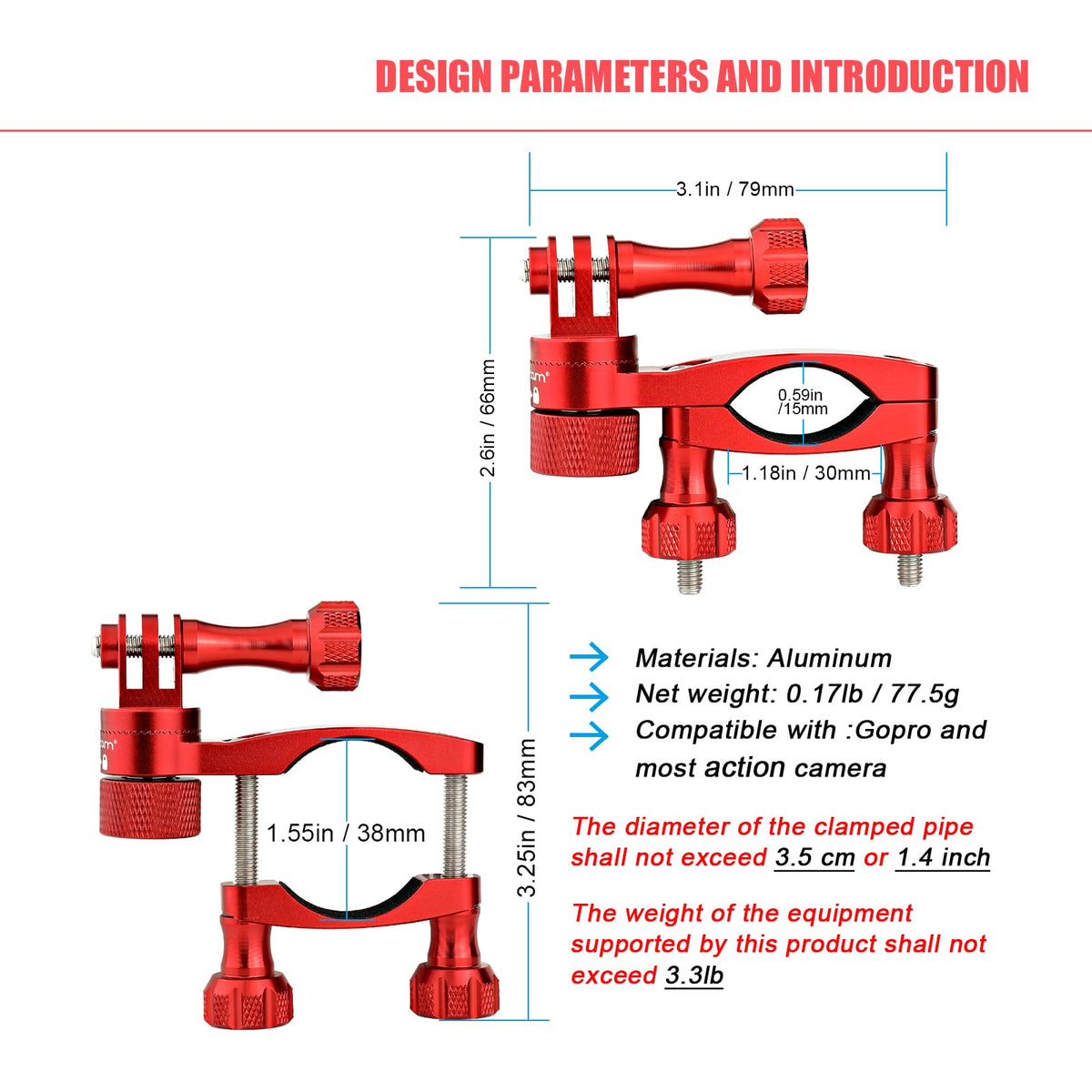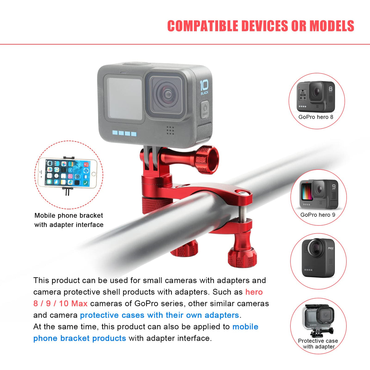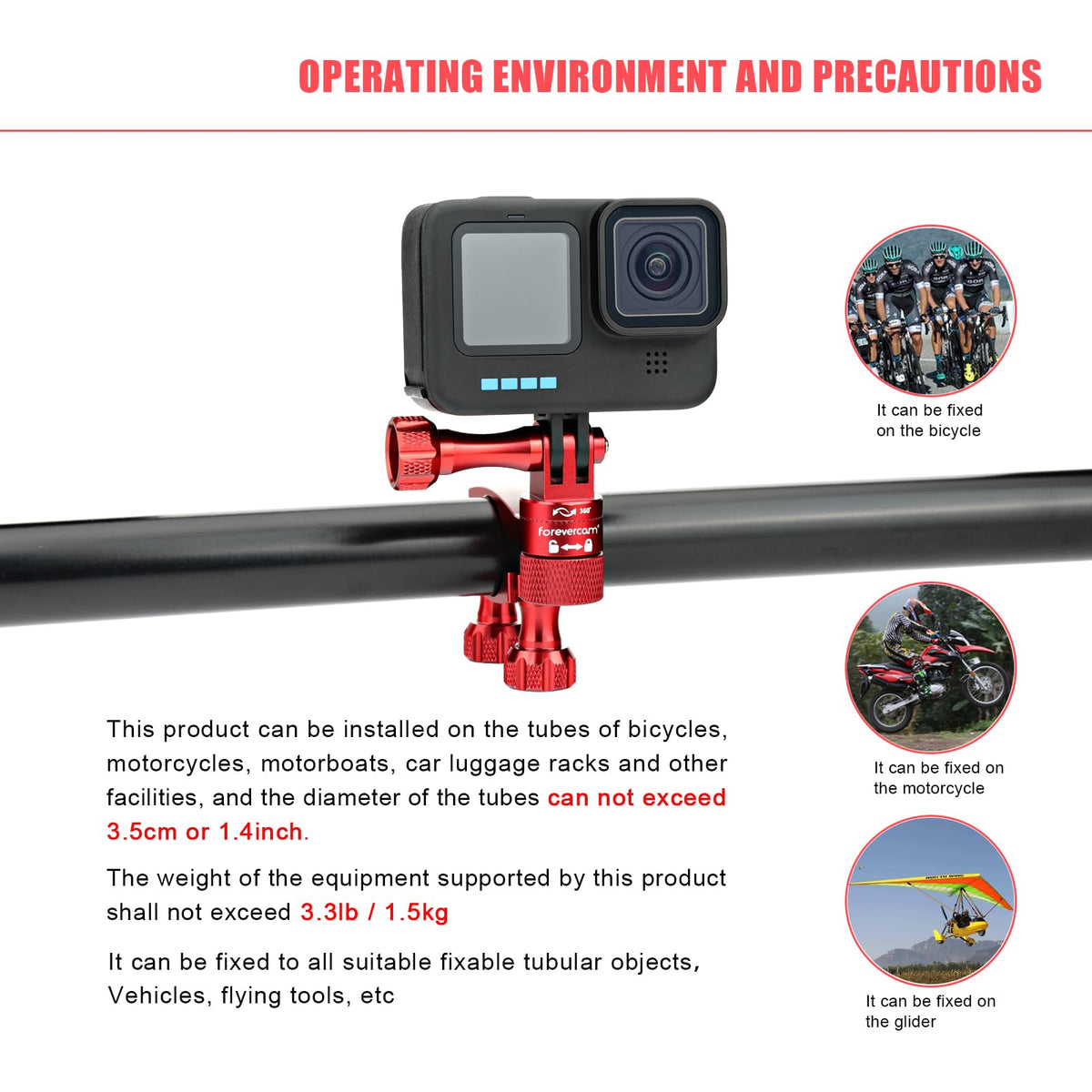 Forevercam Bike Handlebar Mount For Gopro Hero 13/12/11/10/9/8/Insta360/Akaso/Dji Osmo Aluminum Bike/Motorcycle Mount 360�Rotation And Lock Any Direction(Red)