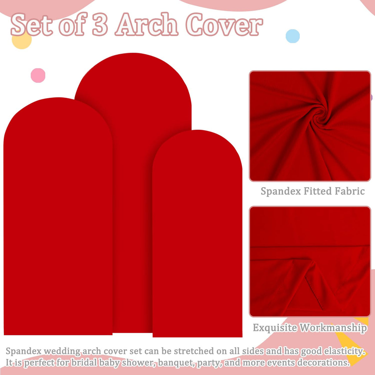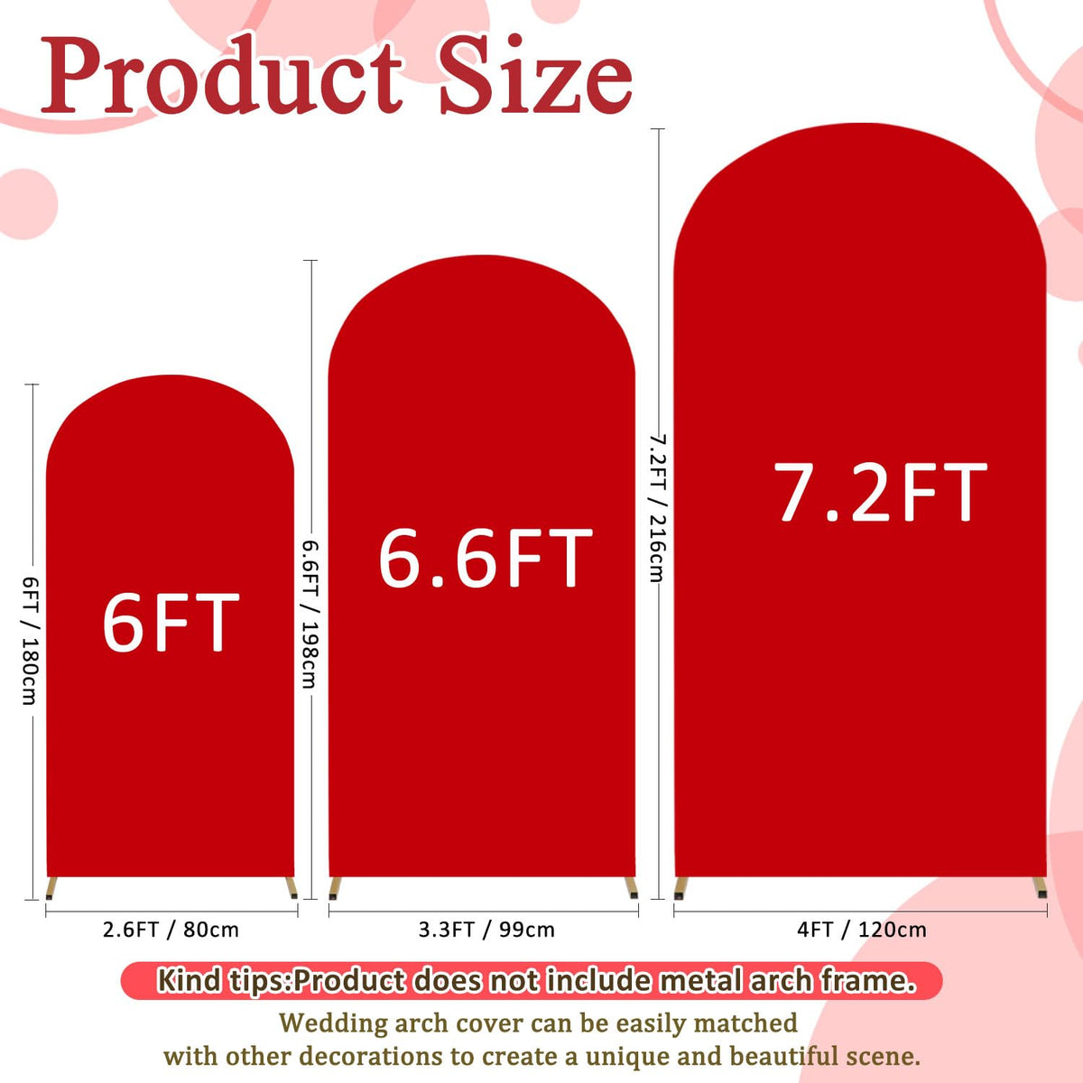 Q: What sizes do the FOTSHARER Wedding Arch Covers fit?A: The FOTSHARER Wedding Arch Cover set is designed to fit round top arches of sizes 2.6x6FT, 3.3x6.6FT, and 4x7.2FT. The elastic nature of the spandex fabric allows for a slight size variation of 0.5-1.5 inches, ensuring a snug fit.