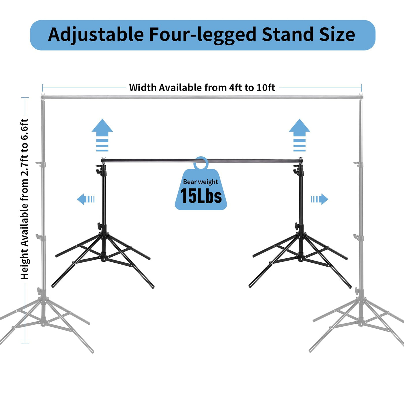 Four Legged Backdrop Stand 6.5X10Ft, Adjustable Video Studios Photo Backdrop, High Stable Backdrop Stand For Parties, Weddings,