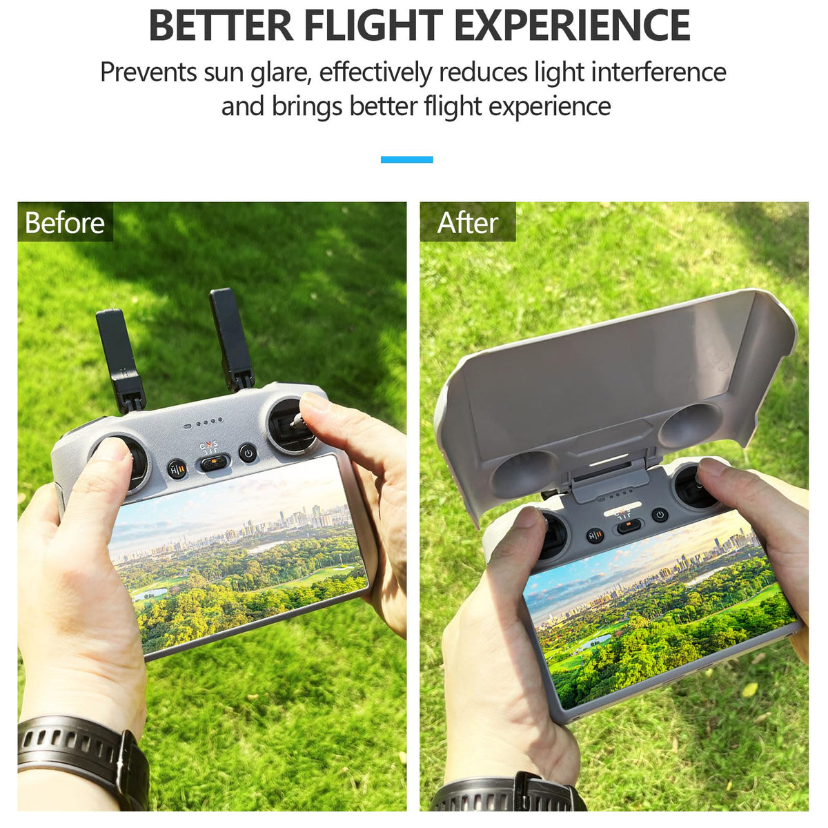 Fpvtosky 2-In-1 Sun Hood & Protector Cover For Dji Mini 4 Pro?Air 3 Rc 2 Controller Our 2-In-1 Dji Rc Controller Cover Provides Both Shade And Safety Protection For The Rc2 Remote Control. Compatible With Dji Air 3 Rc Remote Control, It Is A Must-Buy Dji Rc Accessory. Support 0-180 Degrees Free Adjustment Of Any Angle, So That When You Operate The Rc Remote Control On Sunny, Rainy Or Snowy Days, It Prevents Dazzling Sunlight, Effectively Reduces Light Interference And Brings Better Flight Vision; Special Soft Sponge Material Is Used In The Part Of The Rc Remote Control Screen To Protect The Screen And Avoid Scratches And Abrasions; Rc Controller Cover Is Fixed By The Screw Holes On The Back Of Dji Rc Remote Control, The Included Screws Support Hand Tightening, No Need To Adopt Tools, Installation And Removal Is Very Fast And Convenient.
