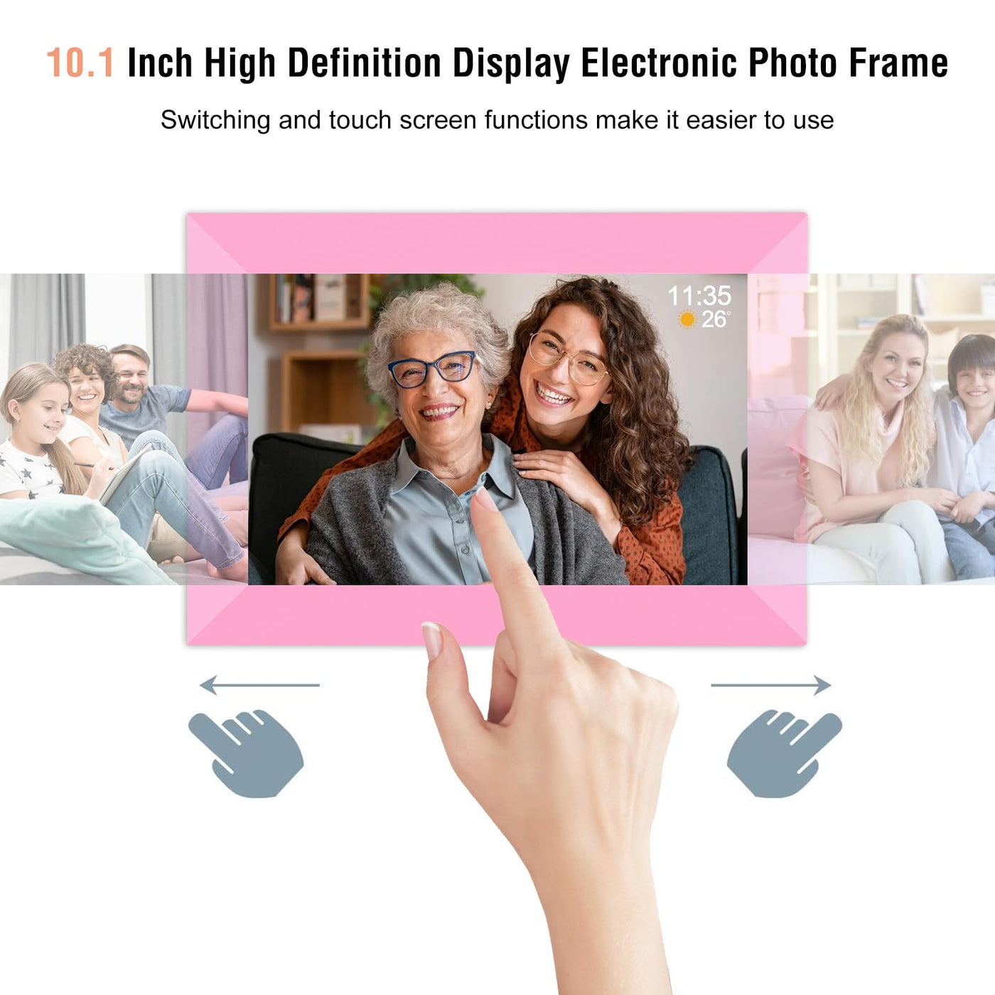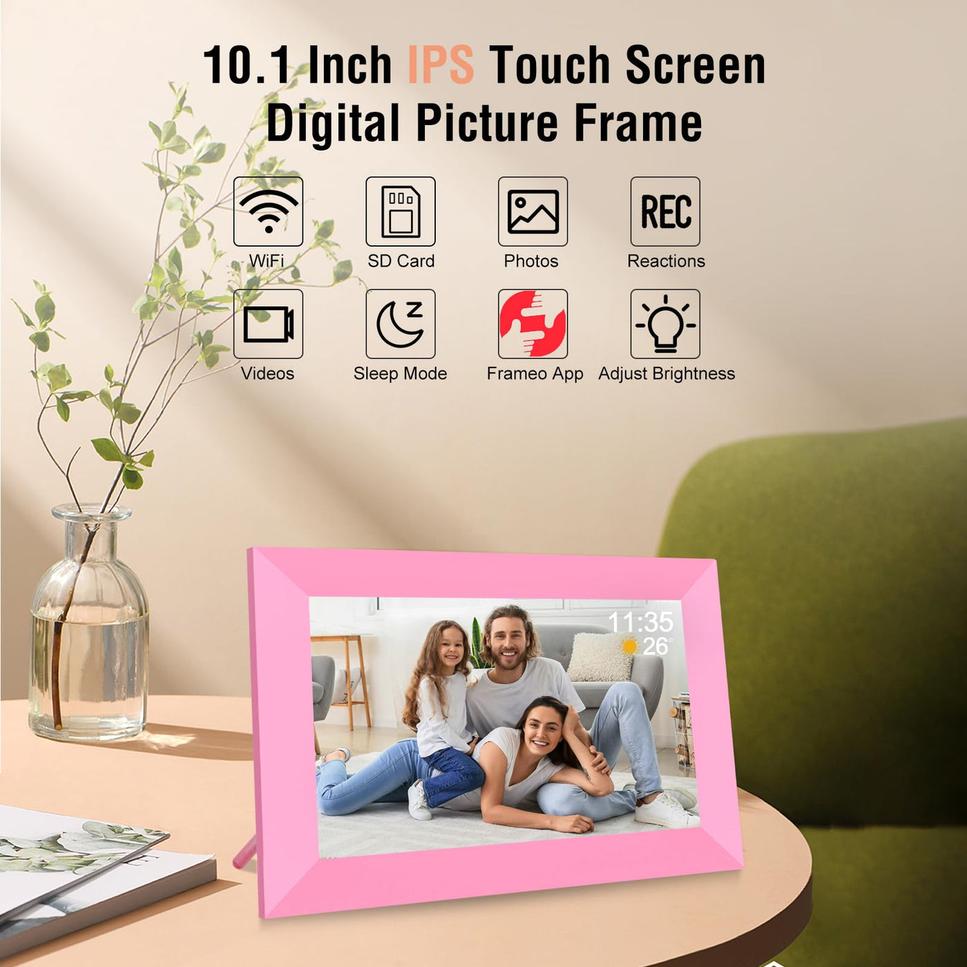 10.1 Inch Wifi Photo Frame Support Frameo Appthe Digital Frames Enable You And Your Loved Ones To Wirelessly Share Photos From Anywhere In The World, Keeping You Connected To Loved Ones. It'S A Heartwarming Surprise For Your Grandparents, Parents, Or Anyone Special!Feature:??10.1'' Hd Touch Screen Delightimmerse Yourself In The Convenience Of A 10.1-Inch Touch Screen, Featuring Hd Ips Technology And A Resolution Of 1280X800. Visuals Remain Vibrant Under Any Lighting Condition, And The Touch Functionality Ensures Smooth Navigation With A Simple Tap.??Auto-Rotate Functionwifi Digital Picture Frame Can Automatically Rotate Photos To Adjust The Direction, And The Border Will Be Filled To Blur The Background. Enjoy Your Intact Photos In Full Screen.??Embrace Connectivityexperience Seamless Wifi Sharing With Your Digital Photo Frame Through The Free App, Compatible With Both Ios And Android. Effortlessly Share Cherished Memories With Your Loved Ones, No Matter Where They Are Located.??Flexible Display Choicesthe Detachable Rack Serves As A Versatile Stand, Accommodating Both Portrait And Landscape Placement. For A Wall-Mounted Display, Utilize The Convenient Back Wall Mount Hole. The Frame Intuitively Adjusts Photo Orientation To Your Preference.??Personalize Your Journeyframeoempowers You With A Range Of Personalization Options. Adjust The Sequence, Zoom, Hide, Caption, Brightness, And Even Activate Sleep Mode, Catering To Every User'S Individual Preferences Through An Interactive Interface.??Package Include1 Digital Photo Frame1 Dc Adapter1 Stand1 User Manual