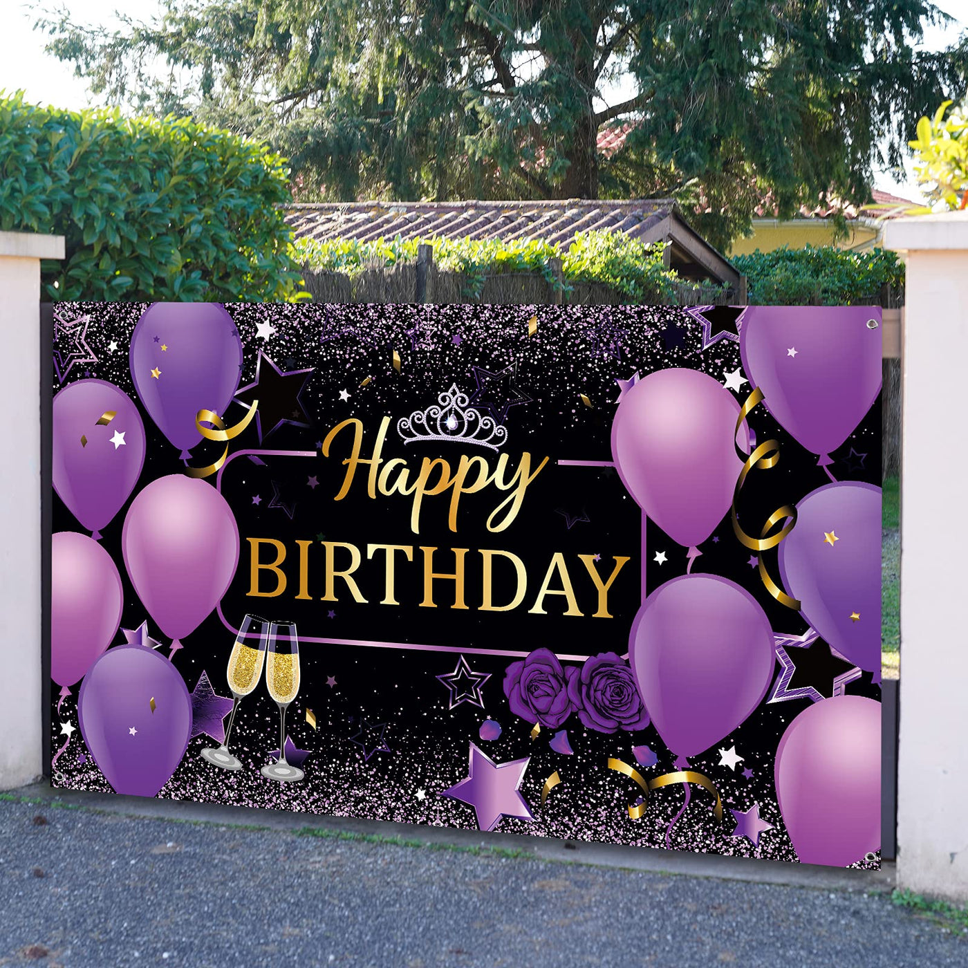 Frienda Purple Birthday Banner Purple Happy Birthday Decorations For Women Backdrop Banner Sign 72.8 X 43.3 Inch Photo Photograp