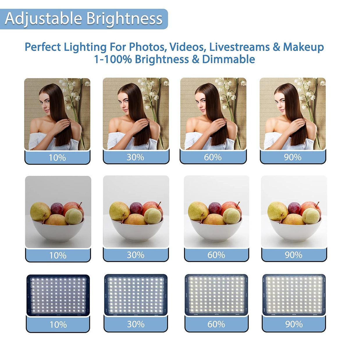 Fugetek Led Video Lighting Kit, 2 Pack, Portable, Adjustable Low Angle, Usb Powered, Desktop Tripod Stand 10 20 , Dimmable,