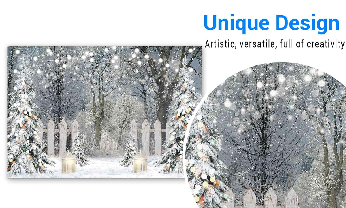 Funnytree 7X5Ft Winter Photography Backdrop Glitter Snowy Forest Pine Tree Background Let It Snow Christmas Xmas Holiday Party D