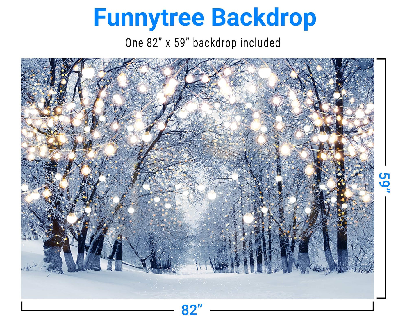 Funnytree 7X5Ft Winter Scene Backdrop Wonderland Snowflake Photography Background Bokeh Glitter White Snow Forest Christmas Part