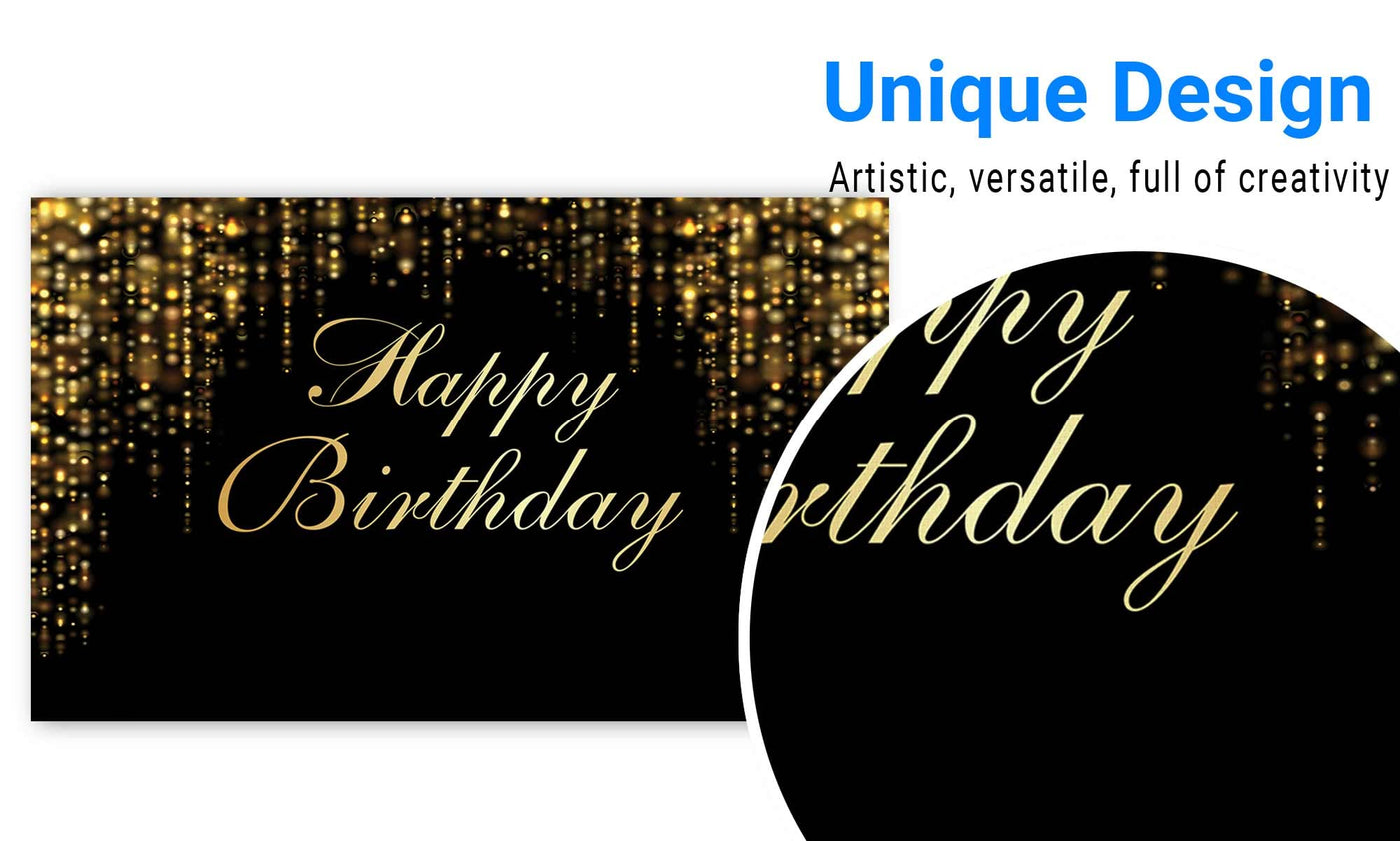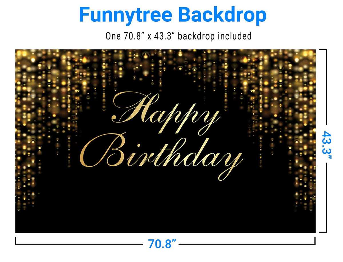 Funnytree Happy Birthday Party Backdrop Black And Gold Glitter Bokeh Sequin Spots Photography Background Golden Sparkle Shining